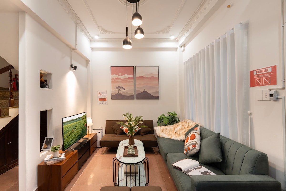 Welcome to our peaceful homestay—a sanctuary of cosiness, beauty, and calm in the heart of D1. Designed in a Wabi-Sabi style, our 3-BR, 3-BA home celebrates natural textures and the art of simplicity. Each bedroom with its own private bath is a minimalist haven with soft linens, neutral palettes, and generous natural light coming from the skylight in the house. Unwind under the sky on our small rooftop terrace. Lounge with a coffee in the morning or enjoy the evening breeze with wine.