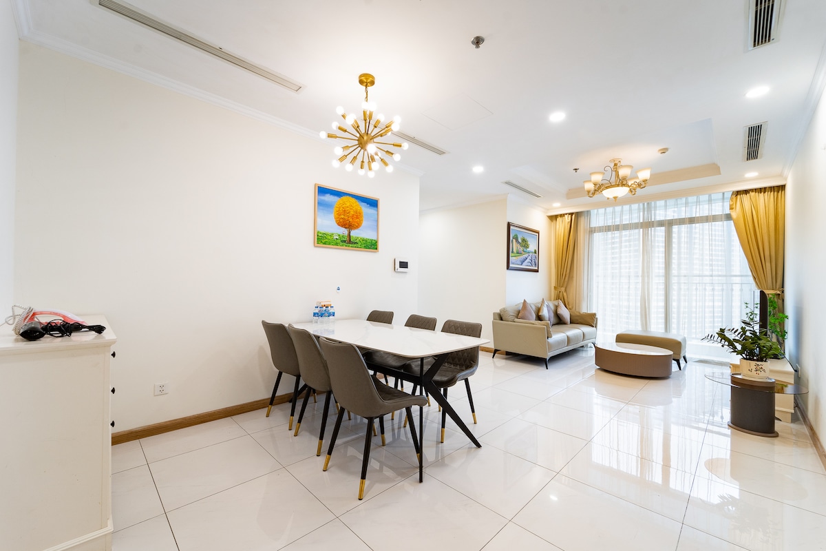 Cozy luxury apt on 6th floor located in a prime location just 10 minutes drive from the city center. 64sqm wide apt with all amenities and space to make you feel like at home. You can lie down on a soft king-size bed for a good night's sleep, cook in the kitchen, lie on the sofa watching the Landmark 81 building sparkle at night or sip a hot cup of coffee on the balcony watching the sunrise. A luxurious rooftop swimming pool, 2 mini supermarkets: 7 eleven and Winmart. Friendly and helpful owner.