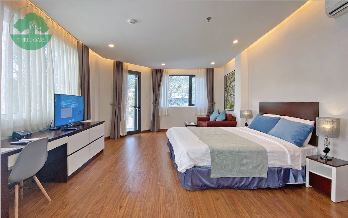 [NOTICE: No photoshoot, event or party. ID/Passports & Visa will be required for registration as per local regulations] [Không quay chụp, tổ chức tiệc hay sự kiện. Bắt buộc trình CCCD/Passport và Visa để đăng ký tạm trú] At this exquisite 3-bedroom Blue Arch suite, you’ll discover aesthetic local designs with a spacious private space. Like every amenity in our properties, your suite is designed and run by us so you can expect the comfort of home with contentment for a top hotel.