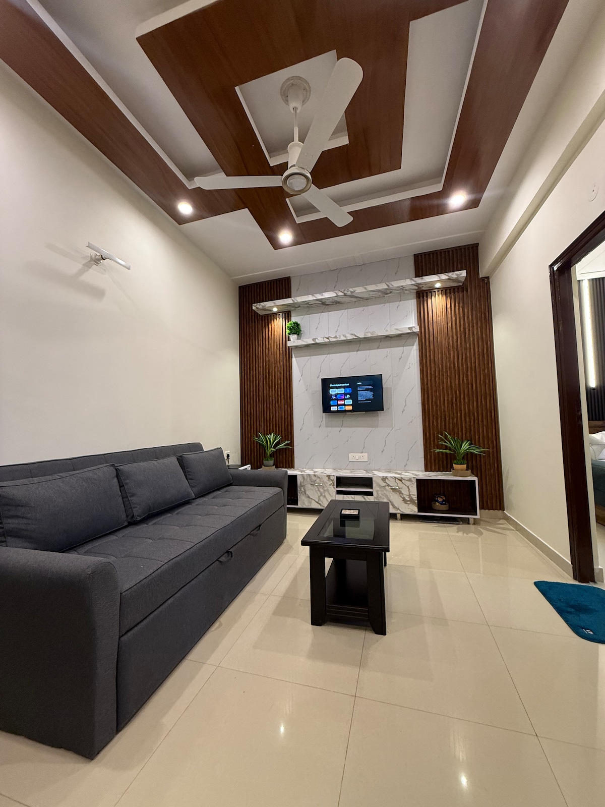 Welcome to our modern, mountainside home with incredible views! This recently renovated space is built right into the side of the mountain, offering a unique and breathtaking experience. With a king-size bed, bright kitchen, and stunning living room this is the perfect getaway. Accessible via a 10-min walk down a rugged trail, the cabin boasts stunning views of the Dehradun Valley. Immerse yourself in nature, and be captivated by the spectacular beauty of this mountainside haven.