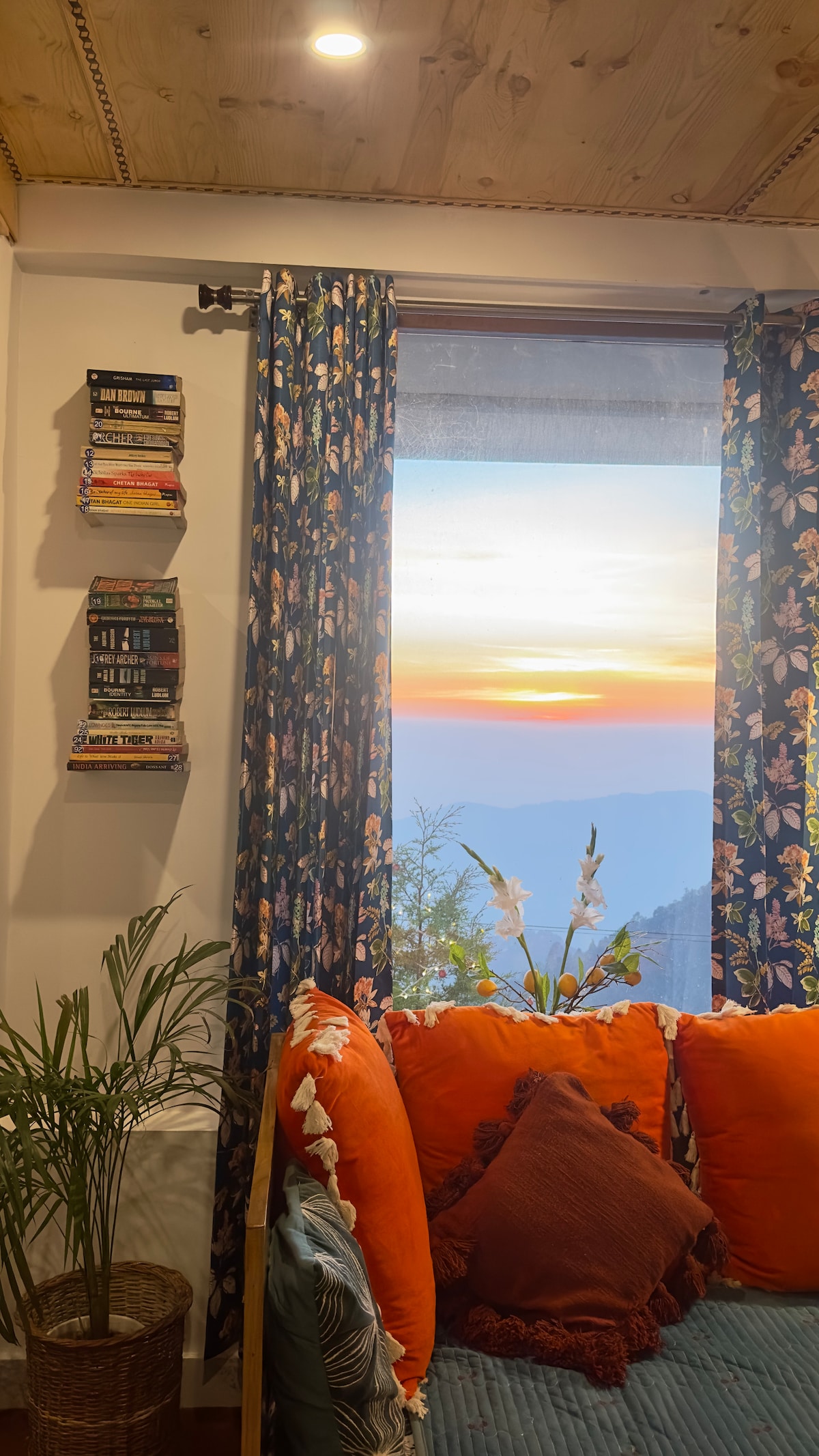 "The Burrow Landour" is a 644 sqr.ft. fully functional rental unit with a private balcony and terrace. It offers unobstructed, panoramic views of the majestic hills and the Dehradun valley from the comfort and warmth of your space. The car drives up to the main entrance and is conveniently located 5-10 mins from Char Dukan. Exact location is bang opposite "Domas Inn" in Landour. Breakfast is included. Breakfast timings: 8.30am - 10.30am. Last check in time: 8 pm.