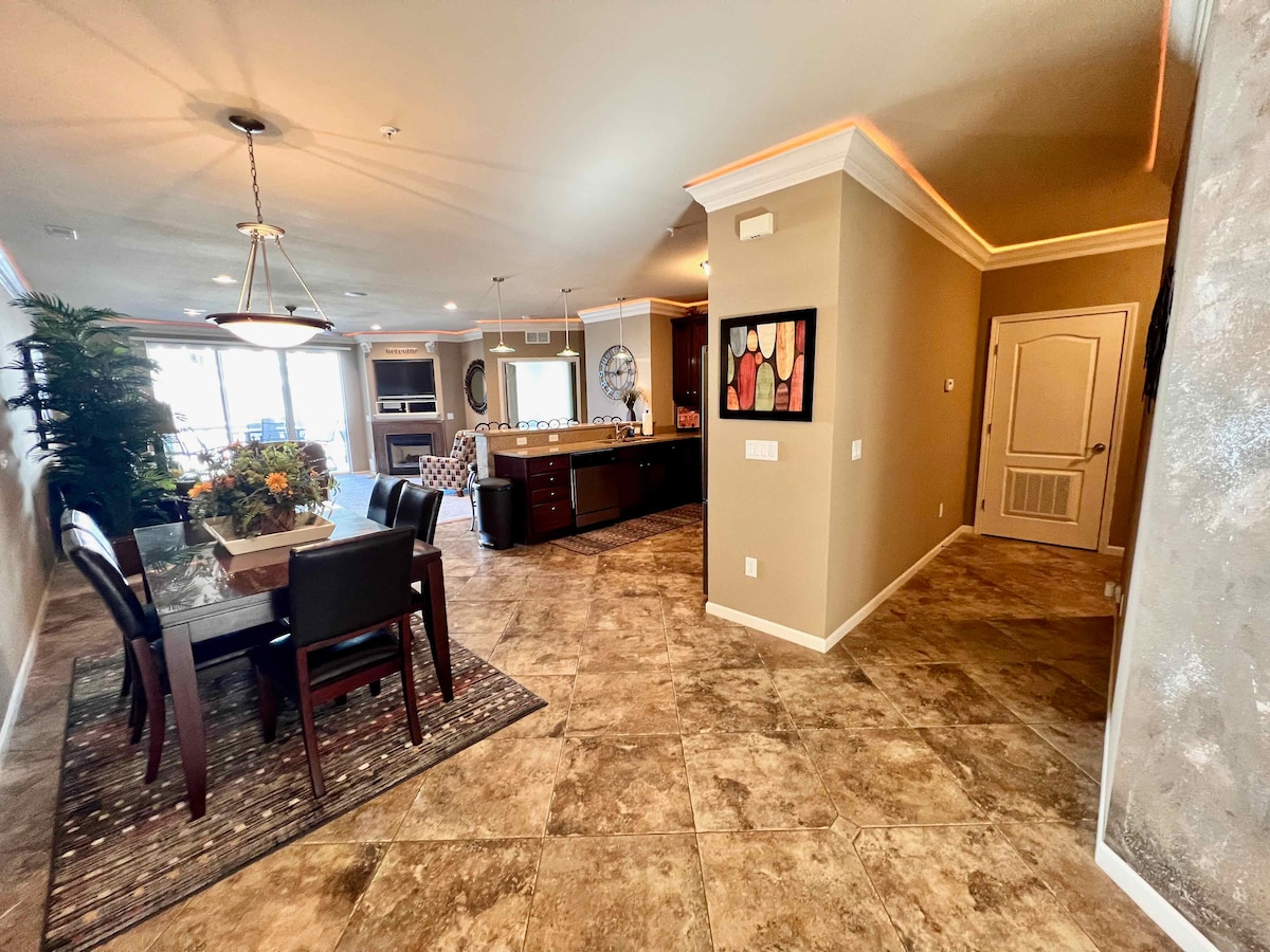 Welcome to our stunning vacation rental located at exclusive Lands End Pkwy. Our property is a luxurious and spacious 3 bedroom, 2 bathroom (sleeps 9) condo that offers breathtaking views of the lake and surroundings. The condo also has a private 2022 27ft Tritoon available to rent. The condo features an open floor plan with high ceilings allowing for ample natural light. You will find many custom features throughout. Other amenities include waterpark, lazy river, pool with waterfall.