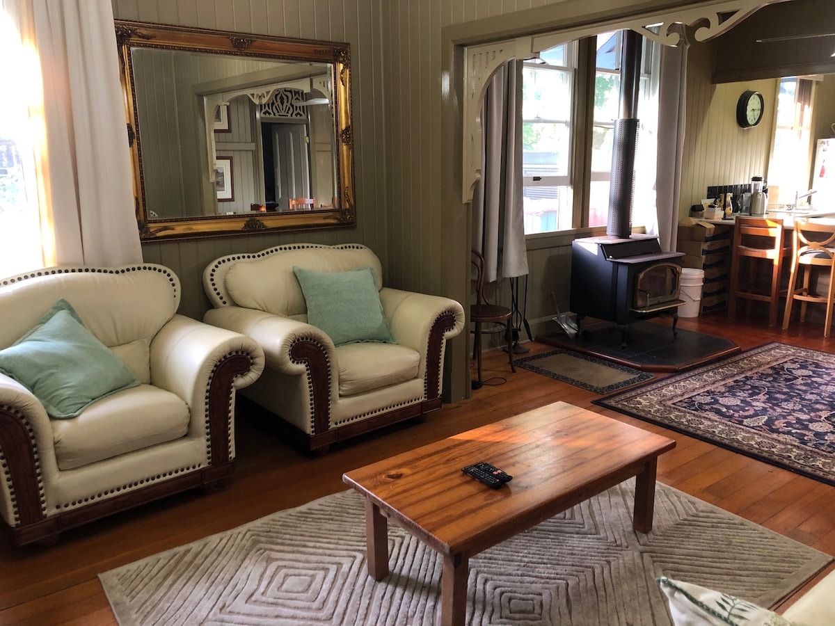 Journey back in time while enjoying the luxury of a fully renovated and contemporory train carriage fitted out with bedrooms, kitchenette, bathroom, toilet and living /TV area and indoor electric fire. Enjoy the sweeping views of the valley overlooking Sarah's hobby farm on the large deck and entertaining area inc. BBQ facilities. Roast marshmallows over your own personal fire-pit at night. Twice daily animal feeding and experiences for the Children led by Sarah your hostess.