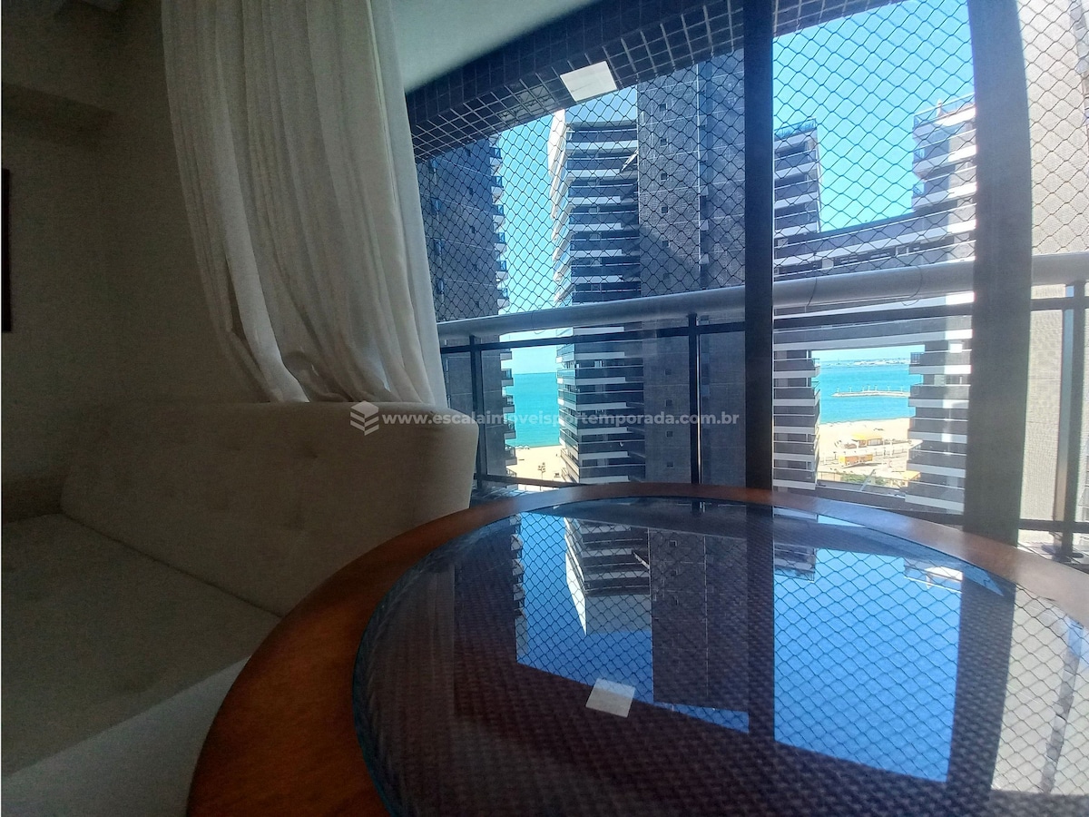 Lindo apartamento, todo climatizado, planejado para oferecer uma experiência de hospedagem super agradável. A varanda ampla e aconchegante nos brinda com uma relaxante vista mar lateral! E o condomínio ainda oferece a infraestrutura de lazer mais completa da orla da capital cearense com piscina coberta e descoberta, academia, squash, sauna, jacuzzi, salão de jogos e playground.