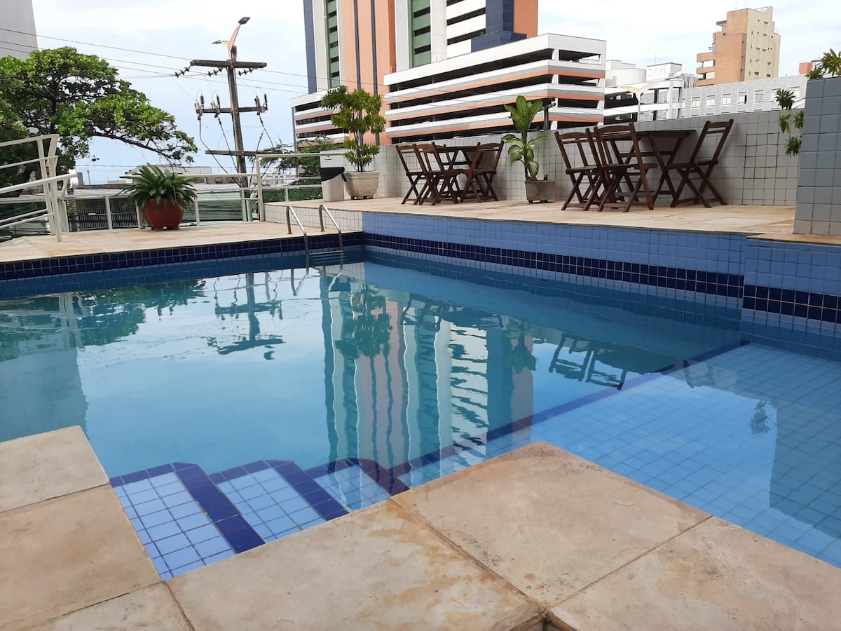 Flat localizado na Praia de Meireles, na melhor localização de Fortaleza. O apartamento tem varanda com vista para o mar. O Flat conta com portaria 24 horas, recepção, limpeza do apartamento por camareiras, piscina adulto e infantil e estacionamento. Próximo a feirinha de artesanato da beira mar. Ao lado do Flat tem uma loja de conveniências 24 horas, com os melhores lanches e restaurante. Você estará hospedado na área mais nobre de Fortaleza, cercado de hotéis e turistas o ano inteiro.
