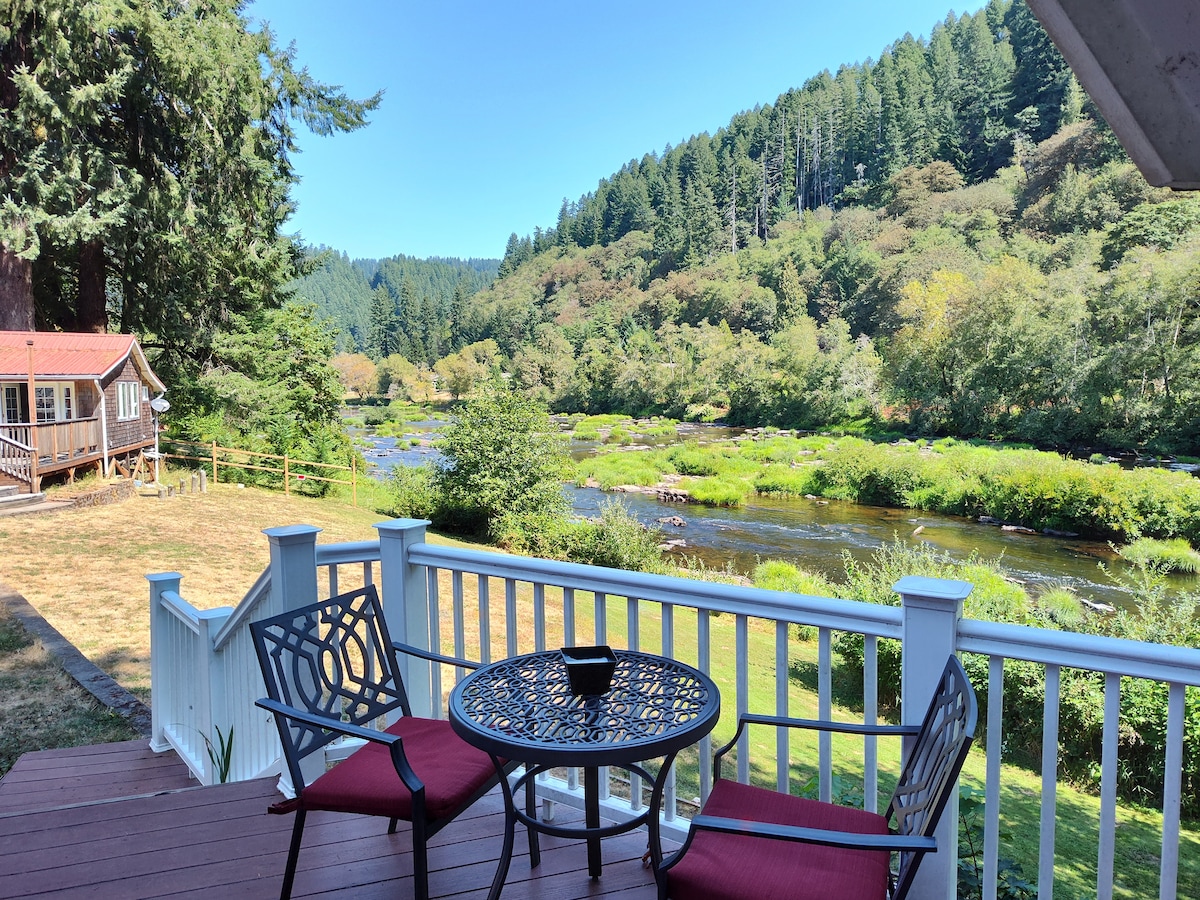 The Riverview Cottage is a little slice of heaven. Unbelievable views from every window; even on a rainy day, you'll catch yourself frittering away the time staring up river, or at the surrounding coast range mountains. Truly heaven on earth. This is the place to get away from technology and reconnect with nature. The Cottage is one of three houses on the property - only grassy areas and river bank are shared.