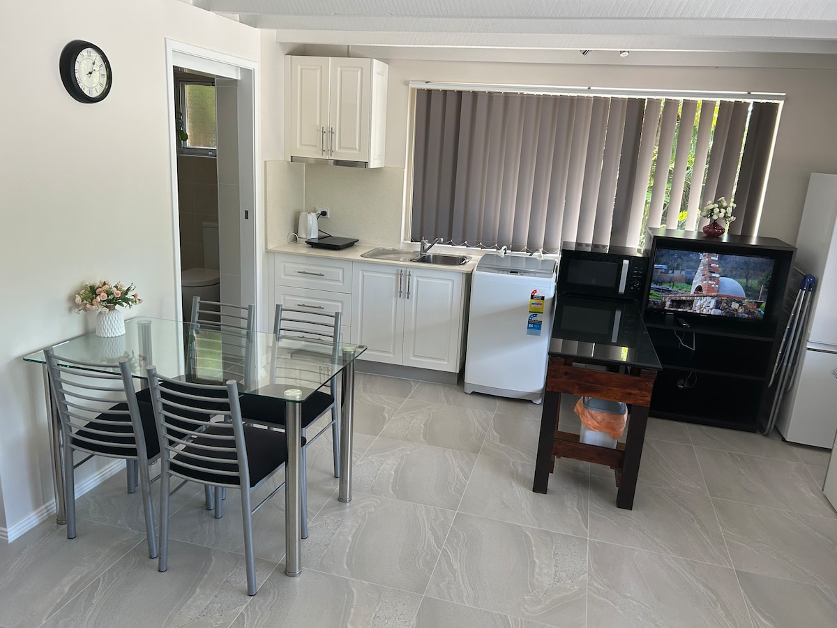 Modern Granny Flat with private entrance that is tucked away in Chatswood West. It is fully self contained, featuring a kitchen with cook top, microwave, oven, and fridge. Guests have access to TV and high speed internet. The bedroom has an en-suite and is very comfortable for 1 or 2 adults. Relax on the deck in peaceful surroundings. Only a 5 min drive to Chatswood CBD and walking distance to parks, bush walks, bus stops, and a convenience store.