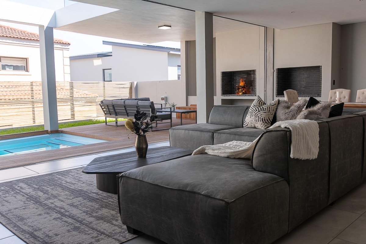 Beachfront villa with INVERTER. Walking distance to 3 beachfront restaurants, Kokomo, Friday Island, and Wunderbar. Langebaan Waterfront close by. PET FRIENDLY & INFINITY / PARTY TYPE POOL ON THE BEACH. Viewing sundeck, a braai/barbeque area protected from the South Eastern wind, and uninterrupted views of the Kite, Surfing, and SUP activities of the close by Cape Sports Centre. On the doorstep of stunning Langebaan Lagoon Driving distance to Sharks Bay, an island-style idyllic kiting bay.
