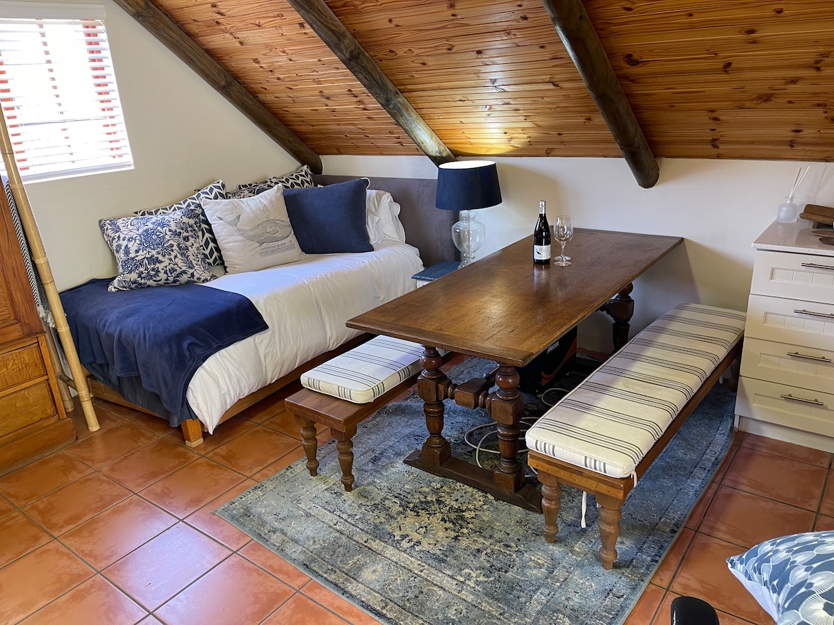 Lovely Apartment, upstairs from the main house, enter through main entrance. Cozy living area with a balcony overlooking the green fynbos belt. Whole house is powered by Solar power. Located in Blue Lagoon, a private secure Estate. Fridge, Microwave, tea & coffee station in the living area. A 5-minute walk from door to quiet Calypso beach 1.8 km from Laguna Mall. 2.6 km from Mykonos Casino and restaurants. Perfect location to explore the West Coast Region or just to get away for the weekend.