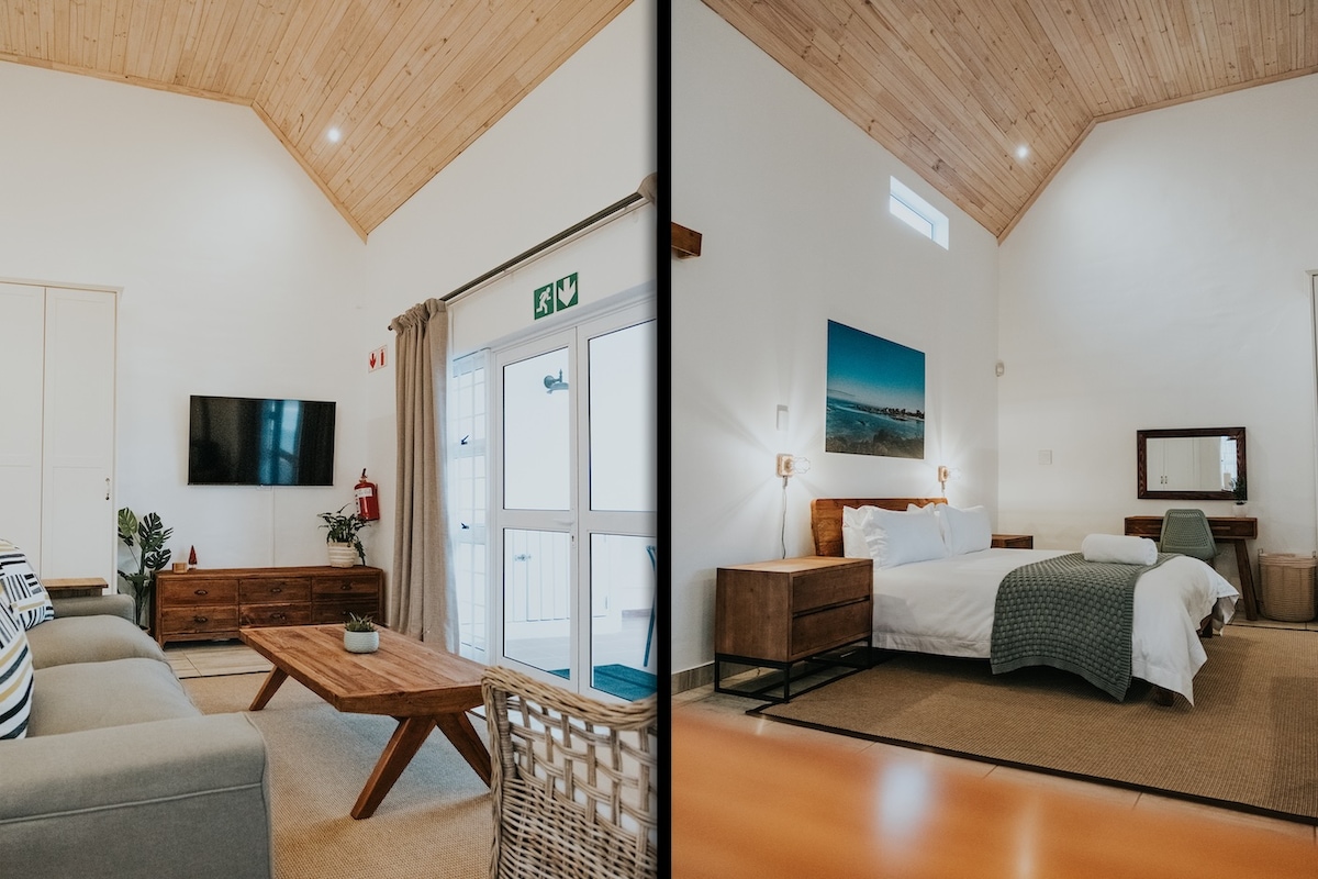 A modern style studio apartment in Langebaan near the crystal clear waters. The apartment features an open plan area with a queen size bed, kitchenette with stove, fast and free Wi-Fi and a 43inch Samsung TV with DSTV. We have built this apartment with functionality and design in mind. The result was a modern studio that provides everything you need for a relaxing and romantic beach holiday in the heart of the West Coast.