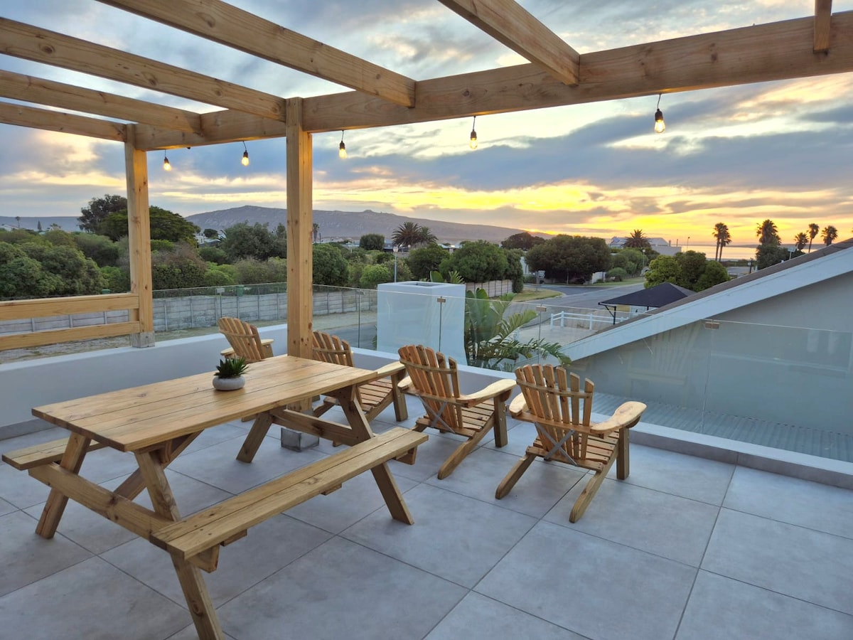 Escape to our luxurious 5-bedroom villa in Langebaan, perfect for families and groups seeking a spacious beachside retreat. This elegant home boasts panoramic ocean views, modern living spaces, and a fully equipped kitchen. Relax on the expansive balcony, enjoy a barbecue at the outdoor stone fireplace, or unwind in the private swimming pool and hot tub. Just steps from the beach and close to local attractions, this villa offers the perfect blend of relaxation and adventure