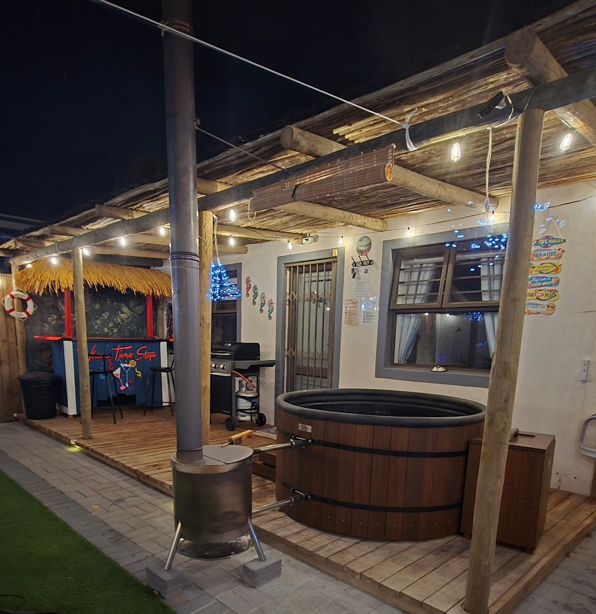 A Place Where Time Stops is a cozy couple’s escape in Langebaan, just 2km from the beach & 3km from Club Mykonos. Enjoy a wood-fired hot tub, bonfire, gas braai, queen bed, full bathroom, TV lounge, free Wi-Fi & private alarm. The perfect spot to relax, reconnect & unwind. The atmosphere is warm, the setting peaceful, and the experience unforgettable. Perfectly positioned close to everything Langebaan has to offer. Come experience what it means to slow down.