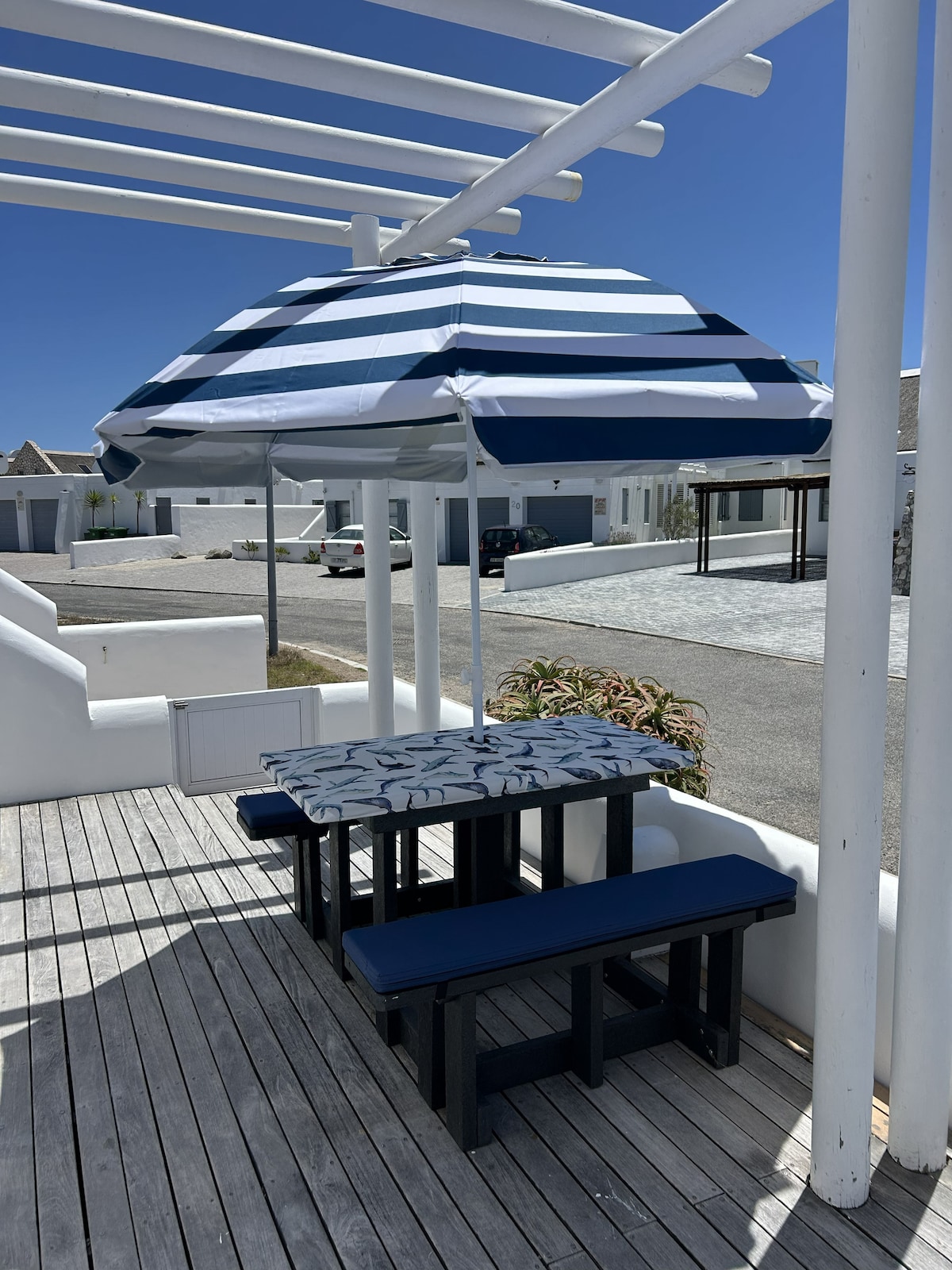 An enchanting retreat in Jacobsbaai with the beach on the other side of the boardwalk. A terrace offers a clear 180-degree view of the Atlantic Ocean. As the sun gracefully descends, the sky transforms into warm hues over the sea, a magical experience that stays forever. In winter, cozy up by the fireplace, listening to the soothing sounds of the ocean. About staying connected—the superfast internet (200Mbps fiber) ensures you’re always in touch. Pack your bags and come savour the West Coast !