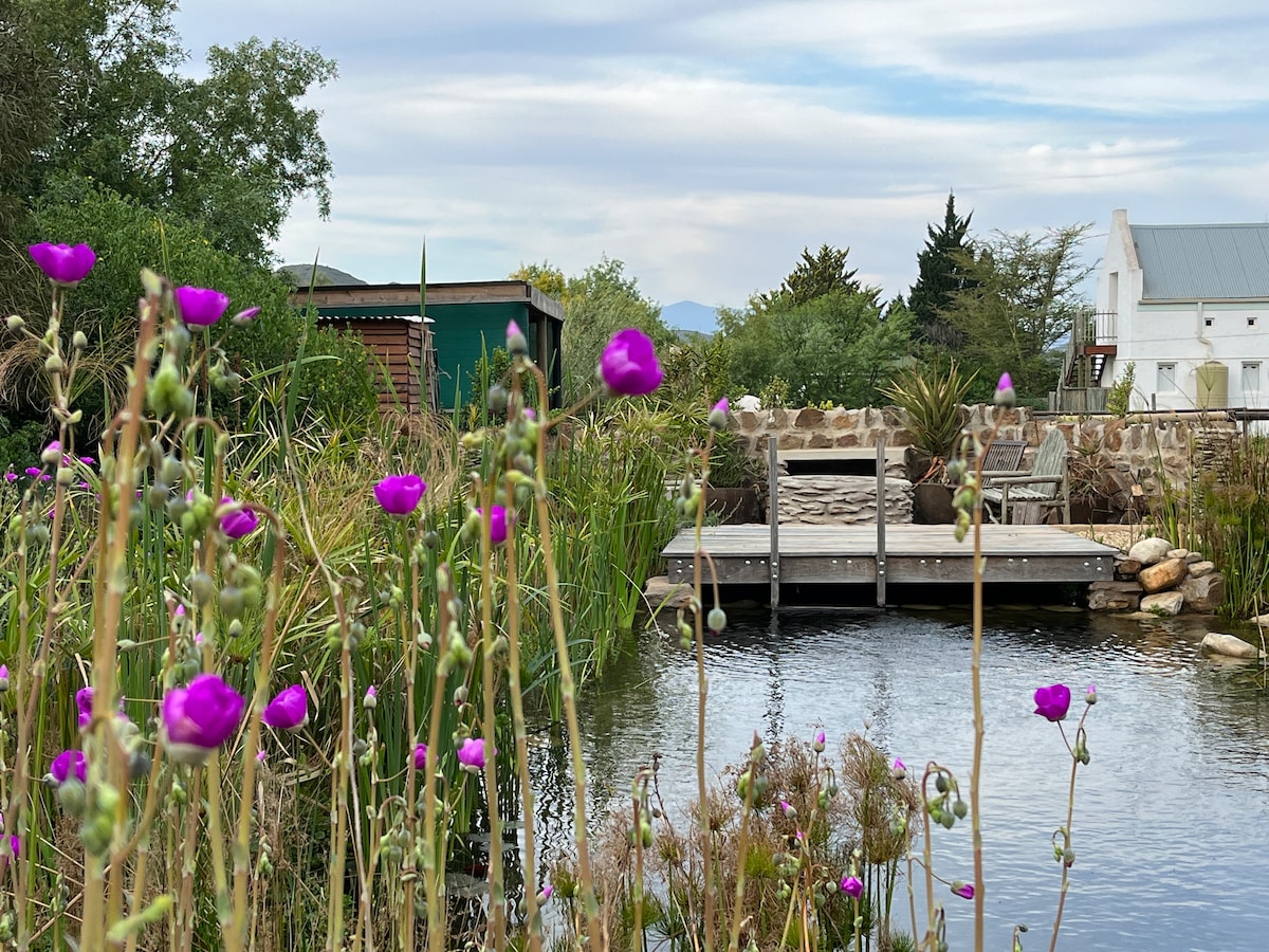 The ROCK MARTIN is part of LUCKY CRANE VILLAS - a collection of contemporary meets country villas in the picturesque village of McGregor with the best views in town. The Rock Martin overlooks the Krans Nature Reserve, welcomes up to 2 adults and 1 child, has a fully air-conditioned en-suite king bedroom including a daybed, full kitchen, fireplace, braai area, a private crystal clear pool with sun deck and a wood-burning hottub.
