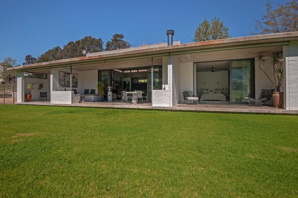 Our luxury home in the country with all the necessary home comforts. Spacious open plan kitchen, dining area & lounge with DSTV. Large wooden stoep/deck, with braai area. A private pool, and magnificent view of the valley and mountains. Large wood fired hot tub for luxury soaking under the stars. Beautiful home in the country - perfect for 2 large families, 3 smaller families or 3-4 couples. Sleeps 6 adults and 6 children. Max 8 adults.