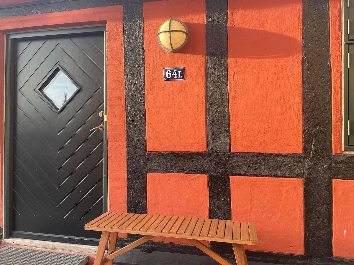 Lys lejlighed på mezzaninplan 6 trin over gade niveau Centralt beliggende i stille gade, 25 m fra gågade En af Svendborgs ældste gader og genbo til bindingsværks karnaphuse tilbage fra år 1742 Plads til to voksne personer uden børn og husdyr Med 3 til 4 minutters gang eller 150 - 300 meter til busterminal, togstation, havnen, byens torv samt indkøbsmuligheder og et rigt udbud af restauranter kan det meste klares uden bil Der er mulighed for gratis privat parkering 100 meter fra lejligheden