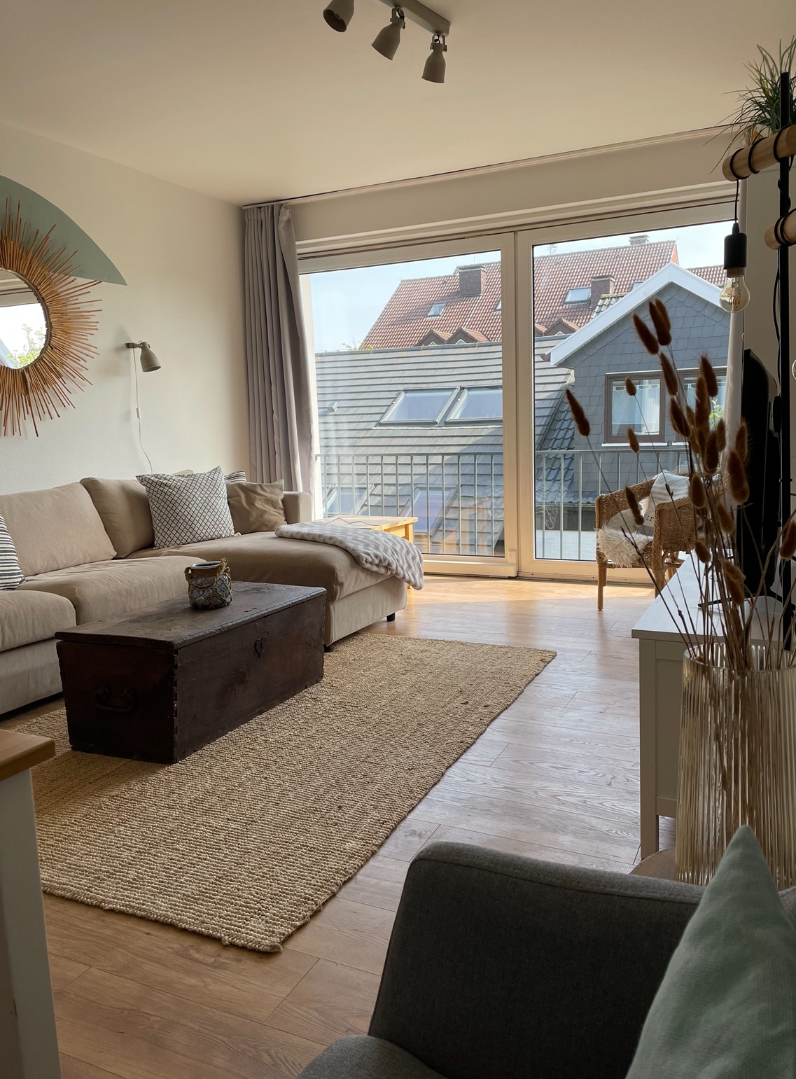 Unsere Wohnung liegt im ehemaligen Wohntrakt eines denkmalgeschützten und umfassend sanierten Gulfhofs in Alleinlage, unmittelbar am Deich, inmitten eines Vogelschutzgebietes. Hohe Decken, dicke Balken, große Holzsprossenfenster mit tollem Ausblick in die ostfriesische Weite und eine moderne Einrichtung mit viel Liebe zum Detail machen diese Wohnung zu einem Ort zum Wohlfühlen.