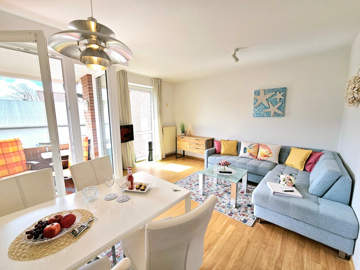 Kommt rein und fühlt euch wohl! Nur wenige Kilometer hinter dem Deich befindet sich diese gemütliche Ferienwohnung, die modern eingerichtet und für einen entspannten Aufenthalt an der Nordseeküste bestens ausgestattet ist. Auch der Badeort Bensersiel oder die Kleinstadt Esens sind von hier aus schnell zu erreichen - der perfekte Ort, um das schöne Ostfriesland zu erkunden (ganz ohne Kurbeitrag).