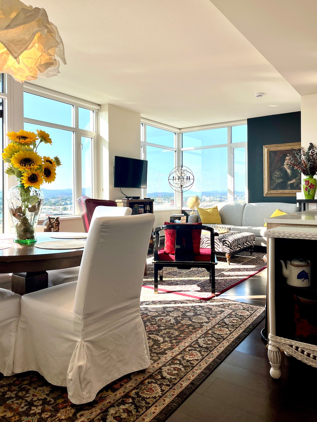 Enjoy ocean, mountain, and city views as well as spectacular sunrises in our beautiful newly renovated suite. Suite is very quiet and has gas fireplace, ambient lighting, rain shower, heated floors in bathroom, large flat screen TV, high end appliances, gas BBQ, & an outdoor sitting area all at your disposal. Located at the end of a quiet cul-de-sac but close to swim lakes, hiking paths, golf courses, beaches, Costco, grocery stores, bakeries, restaurants, and lots more; 3-8 minutes away by car.