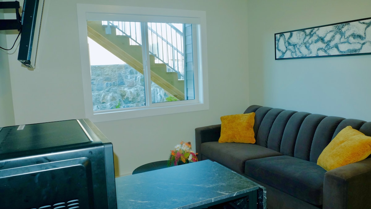 SuiteVista is close to Beautiful Mill Hill Park in a quiet neighborhood with a view of mountains and mighty trees. Just a 30 min walk or 6 min drive to Goldstream (the heart of Langford). Royal Roads University is only a 15 min bike ride away. The evenings are so peaceful here. During the day you hear the neighboring sounds sometimes but still peaceful most of the time. SuiteVista was just renovated. SuiteVista has its own laundry room and an electric fireplace. WiFi, Cable and Parking included.