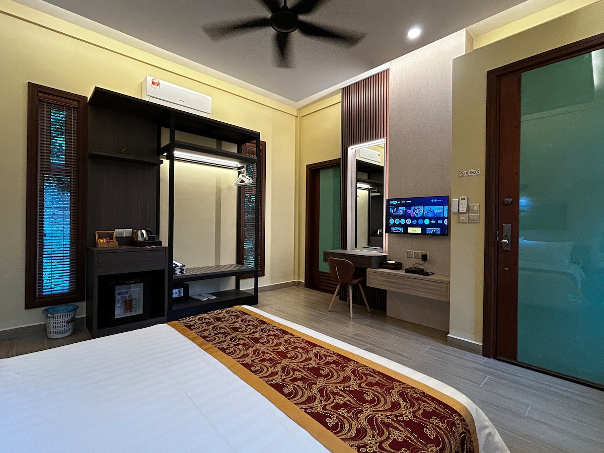 The Sanctuary Langkawi is a fully furnished, malay style tropical villa located near Cenang area within few minutes drive to shops and restaurants. Contemporarily furnished bedroom with AC units, hot and cold water, modern amenities, tea and coffee maker facilities and communal infinity pool overlooking paddy fields.