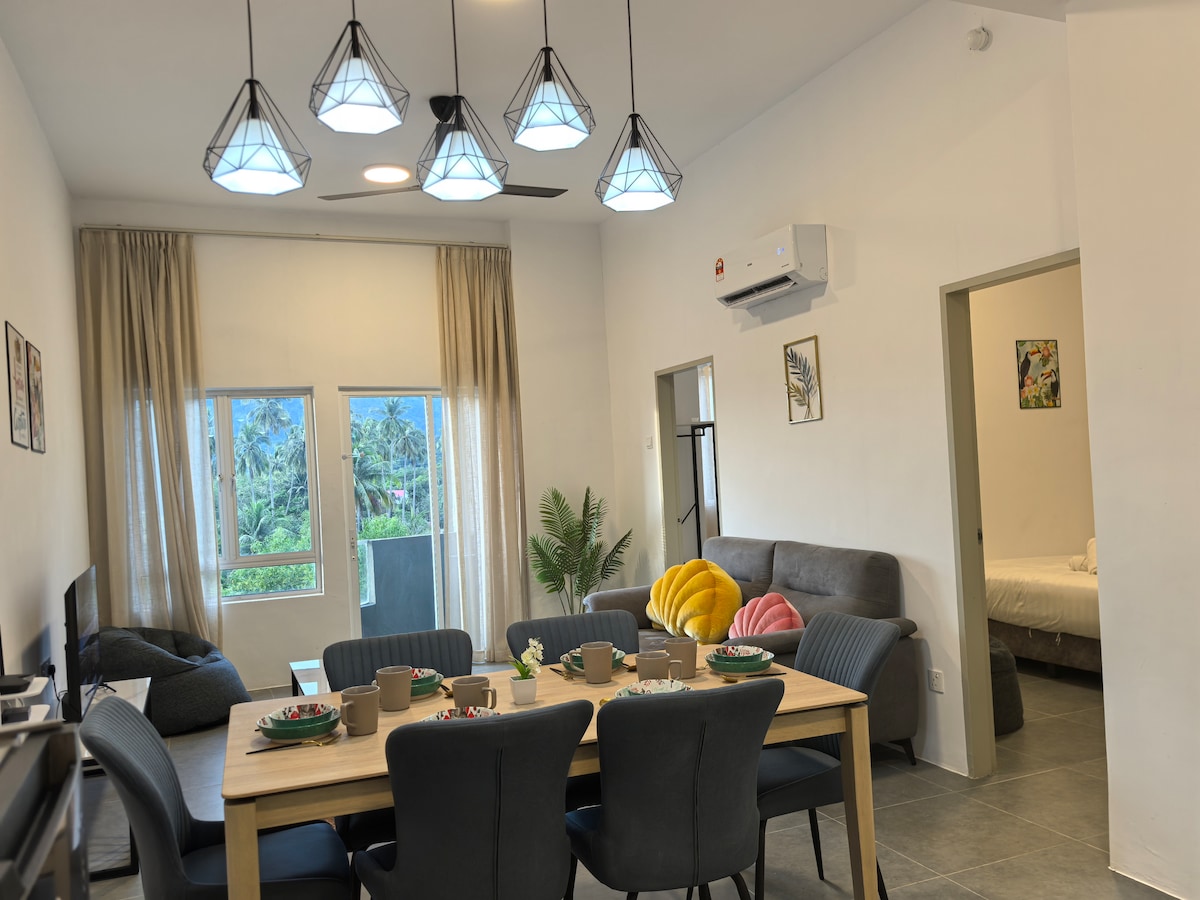 Tropical 3BHK Sea View Retreat in Langkawi Wake up to breathtaking sea views in this fully furnished tropical-themed 3BHK apartment. Enjoy the comfort of a spacious living room and bedrooms overlooking the ocean. Relax in a bathtub after a day out exploring. Perfect for families or groups, this stylish home blends comfort, nature, and island vibes – your peaceful escape in Langkawi.