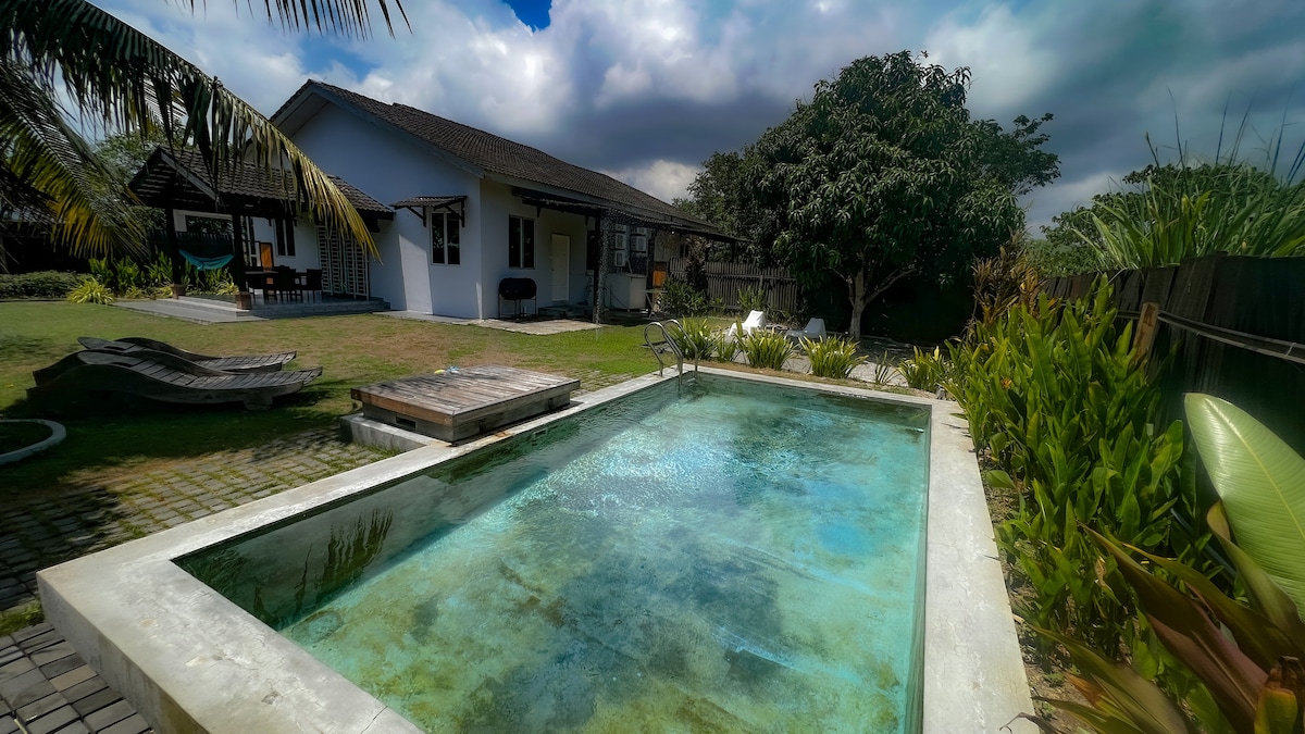 Villa Tenang is a cozy family home with a fully private pool, surrounded by paddy fields and a lush garden, just 6 minutes (1.7km) from Pantai Cenang’s beach and restaurants. Newly renovated with all basic amenities for a comfortable stay — no luxury, just peace and nature. Only 100m from the main street, with parking and easy access to local shops and eateries. Central yet hidden, perfect for those seeking quiet and convenience.