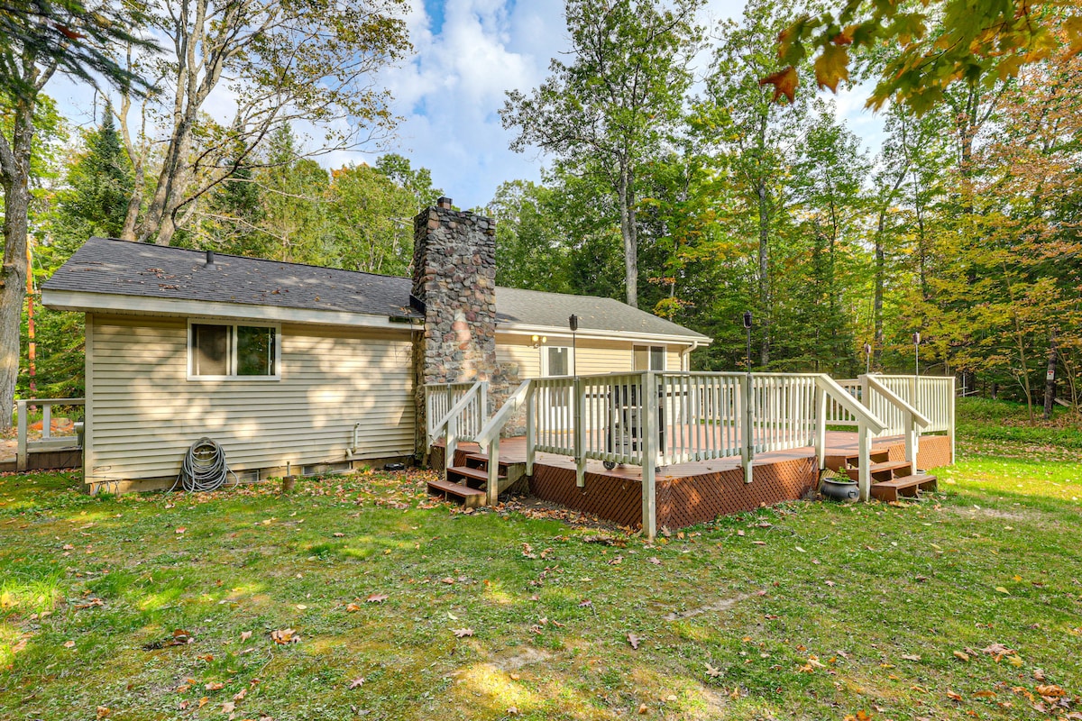 Scenic Loon Lake, a great place to stay anytime of the year! Great pan fish, large mouth bass & northern pike fishing year round! Awesome outdoor hangouts for a fun & relaxing vacation. Hit the trails right from the cabin. The snowmobile trail comes right through our property. The cabin is located on 7 acres and surrounded by thousands of acres of public hunting land. Highway 45 riding stables about 25 minutes south. Bass Lake Golf course about 20 minutes south. We now have starlink WiFi