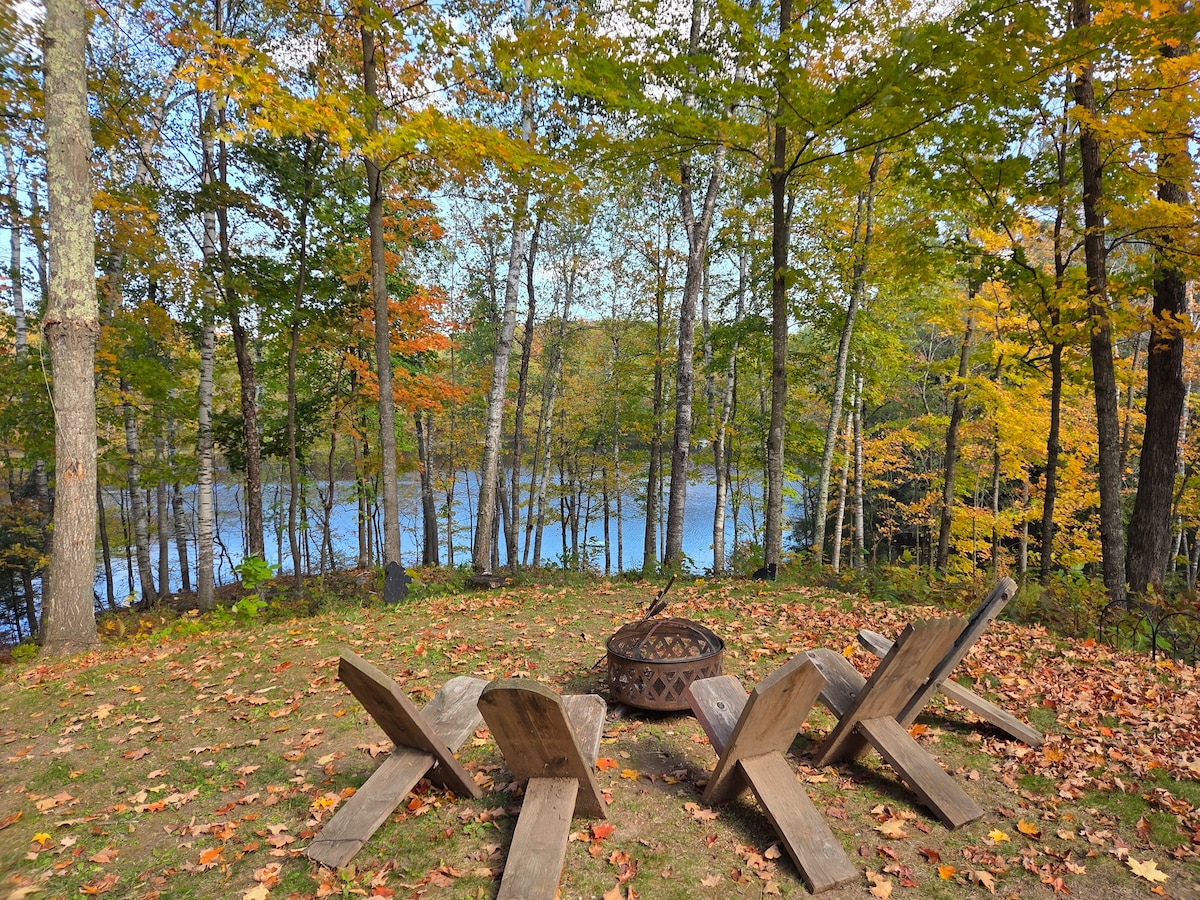 Genuine log cabin with all the comforts needed for a relaxing getaway to nature. Privacy, room to roam. Huge firepit area with abundant seating. Good fishing. Spectacular fall foliage. Winter-direct access to snowmobile trails or stay cozy indoors in front of the fireplace. There are a few taxidermy species mounted on walls. Board games. Three TVs. Dish Network and Internet. Not a good swimming lake but other lakes for swimming and boating within 5-10 minutes away.