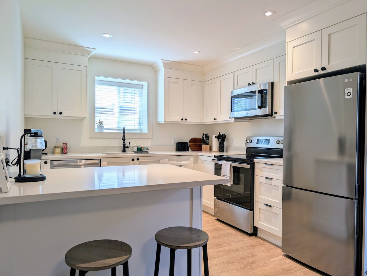 Experience our charming ground level suite near historic Fort Langley. Brand new, sleeps 6 with 2 queen beds and a sofa bed. Enjoy 3 smart TVs, heated bathroom floor, private entrance, and gated yard. Contactless check-in/out, Wi-Fi, parking. Guests love the prime location, easy access to transit, and Fort Langley's attractions. Stay with us for a delightful getaway!