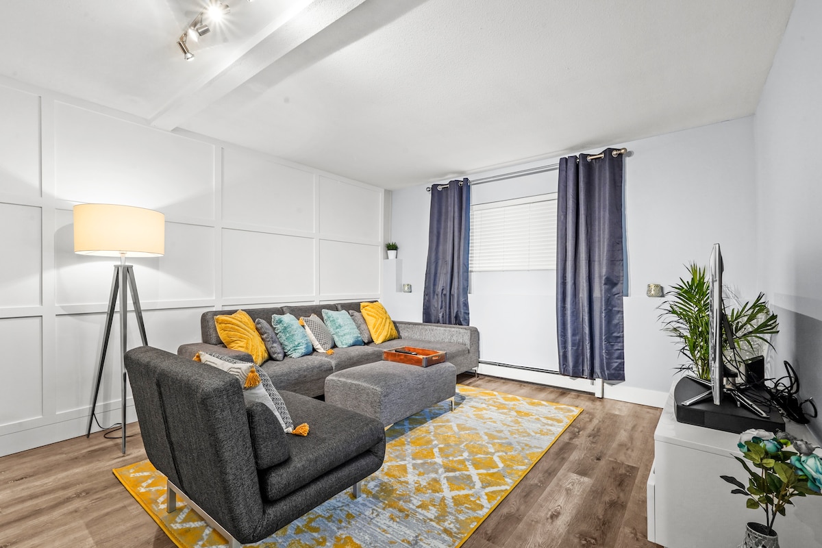 This garden level apartment is located in a beautifully maintained heritage home on one of the most charming tree lined streets in Vancouver. This 650-square-foot private one bedroom, one bathroom suite is perfect for singles or couples for short or long-term stays. Has a fully equipped kitchen with dining area, bedroom with Queen bed, and TV lounge with office space. Please note: ceilings are 6’4” with an occasional 6” drop. **If you are over 6'4" you must be willing to be flexible!!**