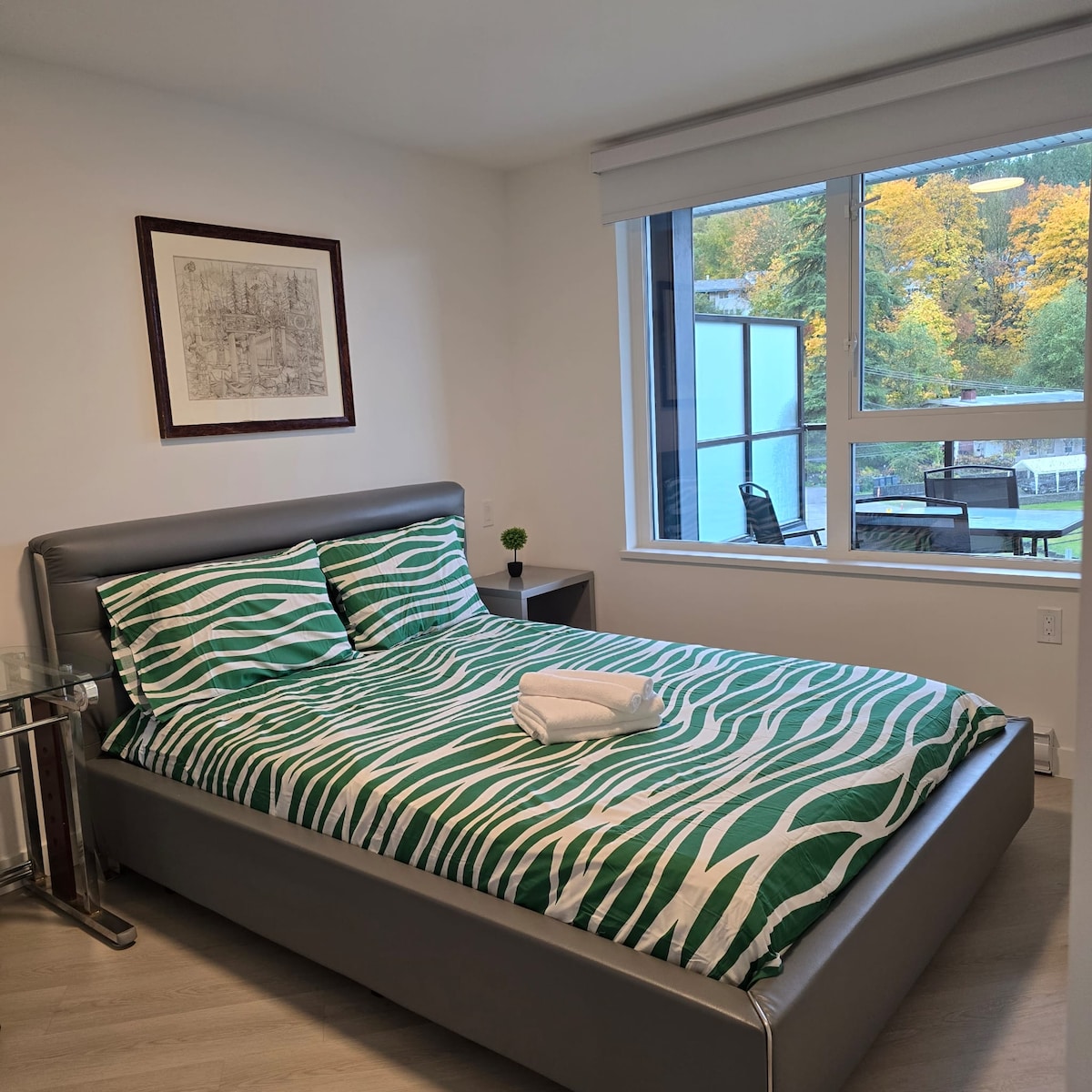 Modern, bright basement studio with queen bed and sofa bed. Fully equipped kitchenette includes cooktop, microwave, kettle, cookware, and flatware. Private bathroom with large walk-in shower and in-suite washer/dryer. Located in a quiet neighborhood near SFU—easy access by foot, transit, or car. Just 30 mins to Downtown Vancouver by car, or 45–60 mins by transit. Clean, comfortable, and stocked with all necessities. Note: We love pets but we DO NOT allow cats.