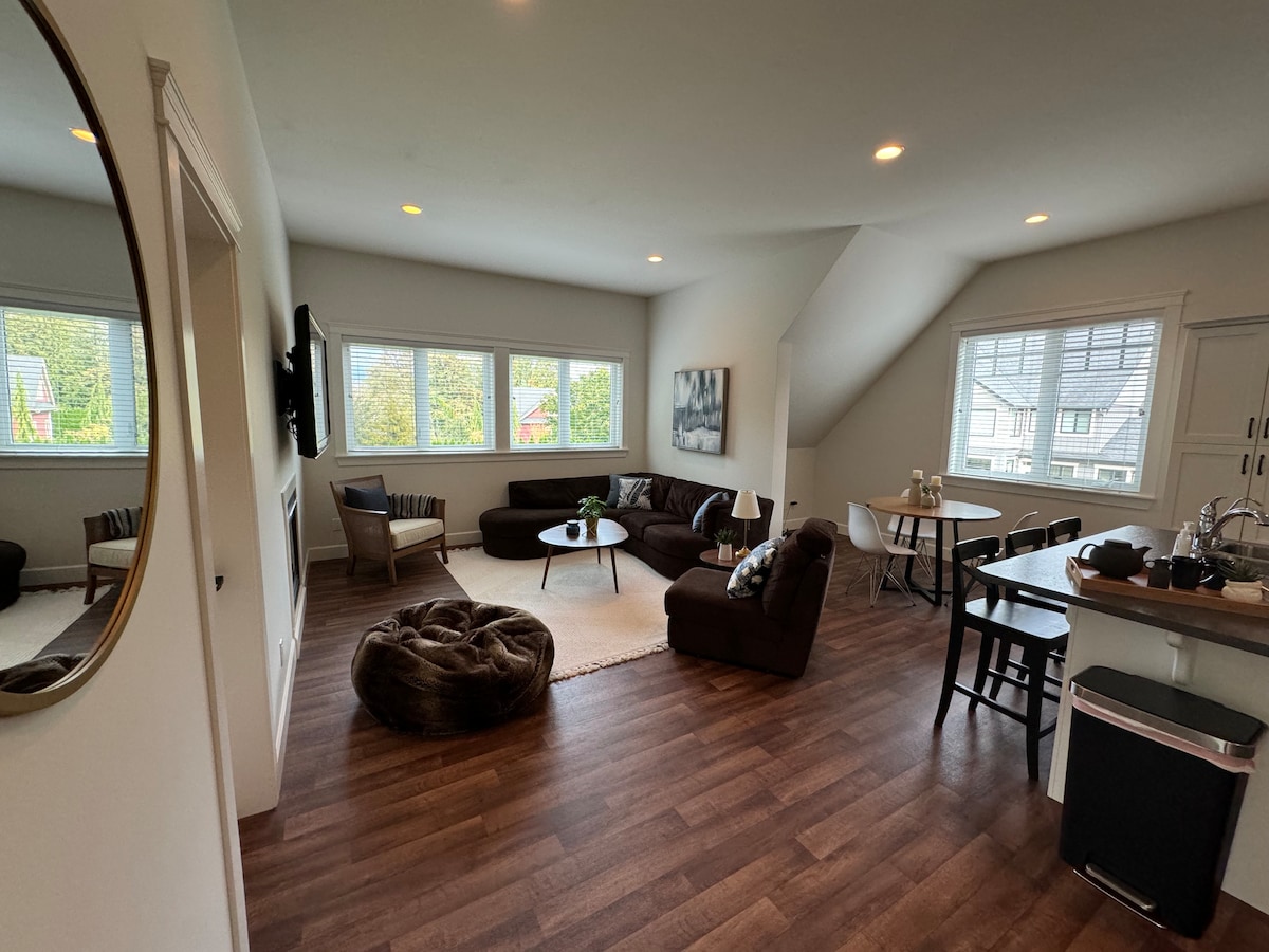 Experience our charming ground level suite near historic Fort Langley. Brand new, sleeps 6 with 2 queen beds and a sofa bed. Enjoy 3 smart TVs, heated bathroom floor, private entrance, and gated yard. Contactless check-in/out, Wi-Fi, parking. Guests love the prime location, easy access to transit, and Fort Langley's attractions. Stay with us for a delightful getaway!