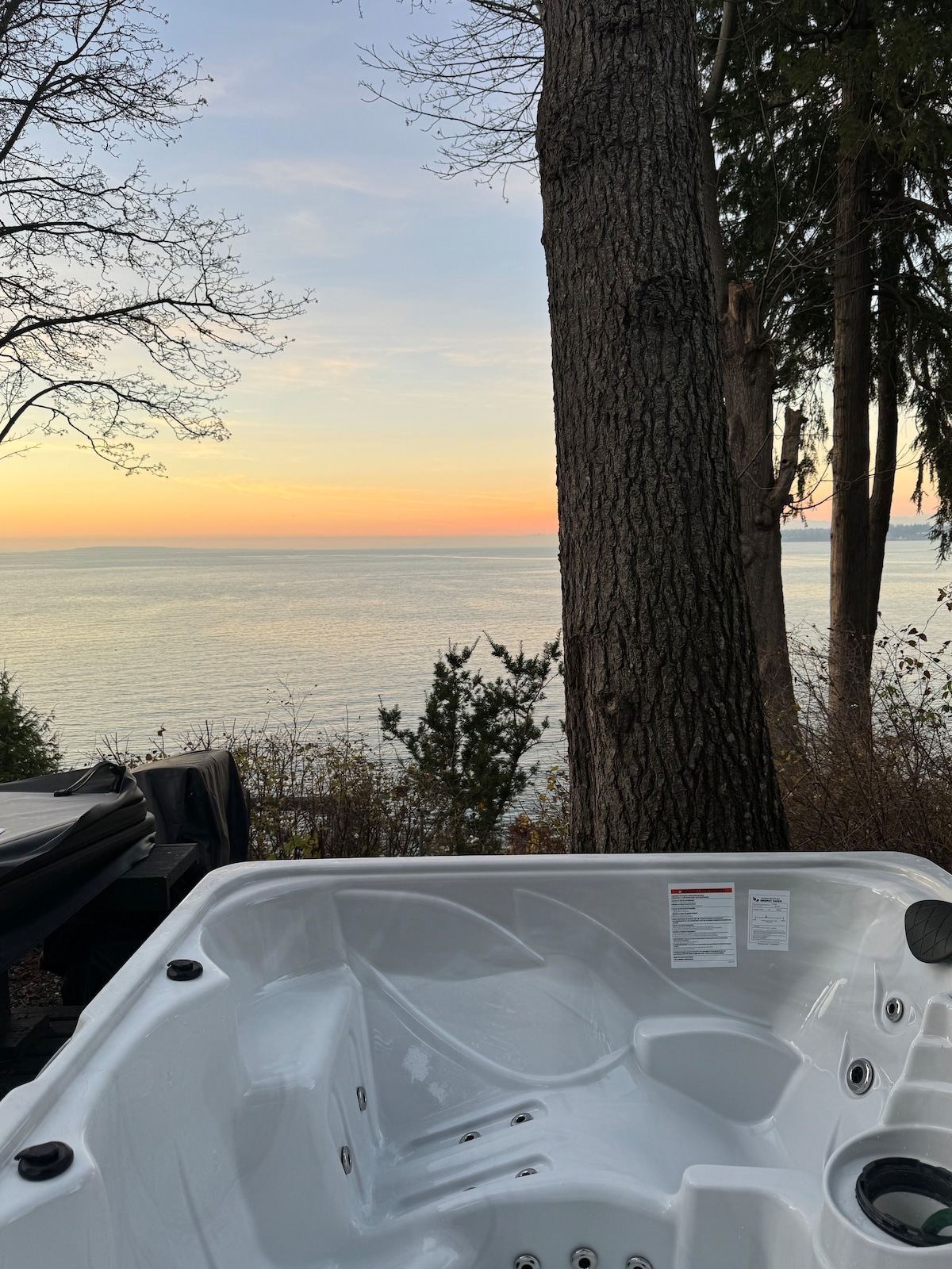 BAY FRAME is a beautifully renovated 3-bedroom, 1-bath A frame cabin with an outdoor hot tub (new!), perched on a high-bank waterfront in the Pacific Northwest. With sweeping ocean views across Birch Bay and direct beach access, this cozy getaway blends vintage charm with modern comforts. Summer 2026: This is the place to stay for the Vancouver World Cup games!