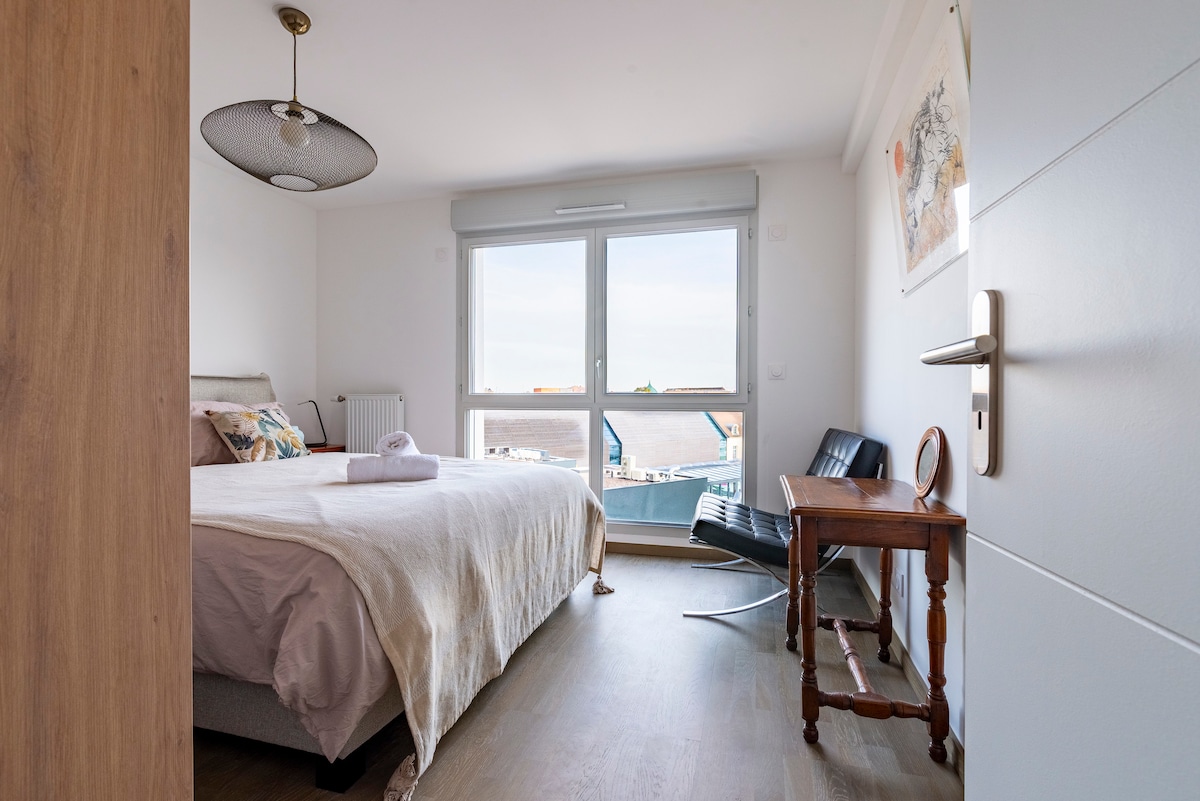 Logement chaleureux, 44m², Rdc exposé sud, terrasse ensoleillée et ombragée. Parfaitement situé au cœur de ville. Accès à tous les sites et commodités. A quelques minutes à pied de la gare. Parkings devant et à proximité immédiate : gratuité 1 heure ou totale après 18h00 et dimanche, permanente à 200m. - Lit 160X200 - Douche 120x80 - TV 50' - Cuisine équipée: plaque électrique, hotte, four, micro ondes, frigo-congélateur, bouilloire,machine à café DolcéGusto,machine à laver - Wifi et RJ45.