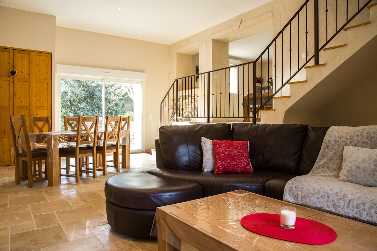 Op het terras van Picholine kan je ieder jaargetijde genieten van het goede franse leven. Het huis is authentiek maar heeft alle comfort. Bij het zwembad is altijd zon. Er zijn fietsen aanwezig om naar het gezellige centrum te fietsen in 5 minuten. Picholine is een klein maar zeer compleet huis met 1 grote slaapkamer. Picholine is altijd privé. Picholine is exclusief voor de gasten die het huren Er is altijd iemand op het terrein aanwezig. We hebben een (NL) beheerders stel We liggen aan de rand van het dorp. Heerlijk rustig aan een landweggetje. Maar op de fiets ben je met 5 minuten in het gezellige centrum met vele terrasjes en winkels. Er zijn fietsen beschikbaar voor onze gasten. Picholine is het makkelijkst te bereiken met de auto maar ook is er in het dorp een trein station. Éénmaal ter plaatse is het dorp heel makkelijk te bereiken met de fiets. Picholine ligt aan de cour samen met de andere huizen. Ieder terras heeft voldoende privacy, geen zicht op een ander terras en eigen terras meubilair waaronder een eettafel, een lounge set, een parasol en een plancha. Het zwembad is gedeeld en ligt op een ander niveau. Er zijn ruim voldoende ligbedden aanwezig. De grote loft naast het gastenzwembad wordt ook gedeeld met de andere gasten, daar liggen oa de matrassen voor op de zonnebedden.