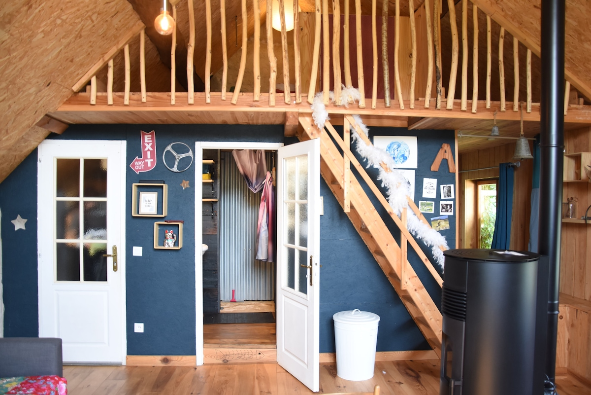 Unconventional accommodation in a green setting. You will hear the sound of birds and the song of the stream for a guaranteed rest with no other noises than those of nature. A romantic getaway as well for a cozy evening by the stove in winter or on a sunny terrace in summer. The rustic and minimalist aspects are also highlighted: dry toilets, reduced surfaces and layouts but executed with taste and simplicity.
