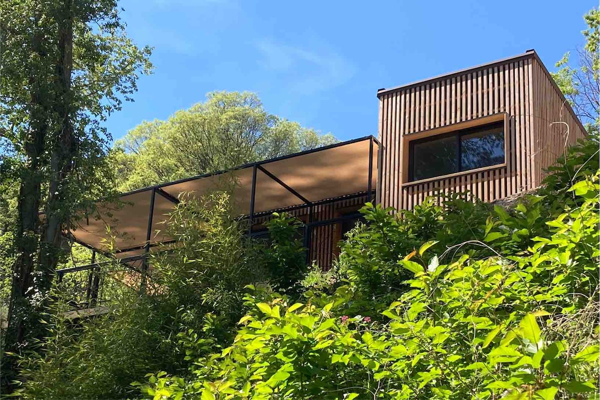 In my rustic and cozy chalet, I offer you a unique living experience in the heart of the forest, nestled in the mountains, where wildlife also roams. A large wooden terrace and private garden allow you to fully immerse yourself in nature. You'll find all the comforts you need, including 4G Wi-Fi. Located in the heart of hiking trails in the Montagne Noire region of Occitanie. 45 minutes (35 km) from Carcassonne airport. Taxi available from Lespinassière (english speaking).