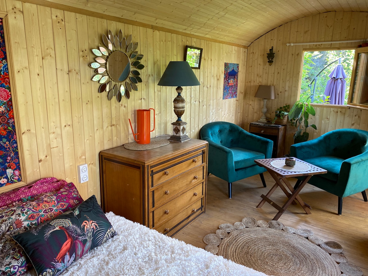 Roulotte nature avec piscine.