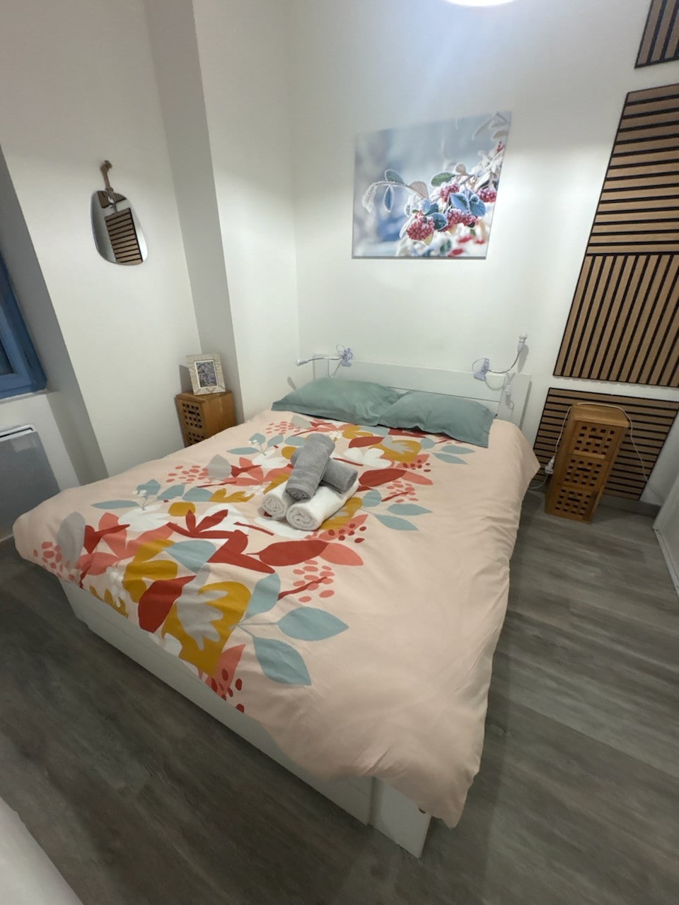 En vacances où en deplacement, venez relaxer dans ce charmant T2 meublé et équipé, climatisé et au calme, en res-de-jardin de villa avec entrée indépendante. Chambre avec lit double et banquette convertible 125x180, dans le salon. Lit parapluie sur demande. Parking gratuit à 50m. Plages et commerces à 9min à pied. Linge de maison fourni. Logement non fumeur. Pas d’animaux.