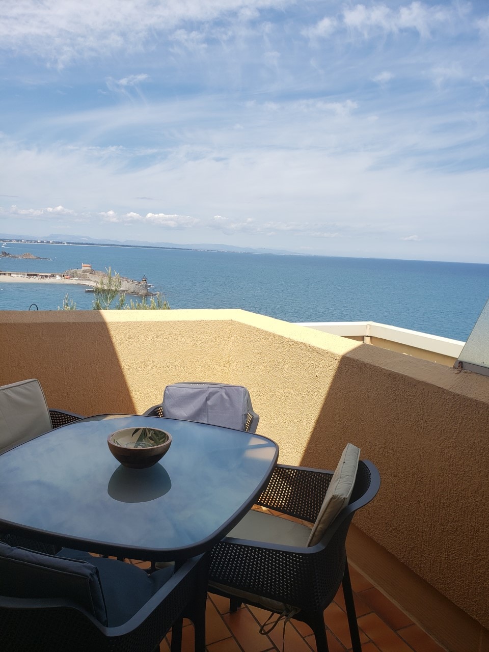 Cosy. Studio climatisé, résidence, piscine, solarium La vue depuis la terrasse privative et depuis le solarium est assez magique (Clocher/Baie/Littoral roussillonnais de Port Vendre jusqu'à Leucate) La balade à pied d'un petit quart d'heure qui vous conduira de la résidence au centre historique, en longeant le bord de mer, est un véritable enchantement. Restaurants, boutiques, plages et criques accessibles à pied. 2/4 couch. chambre "verrière" lit 140 + canapé lit 140.