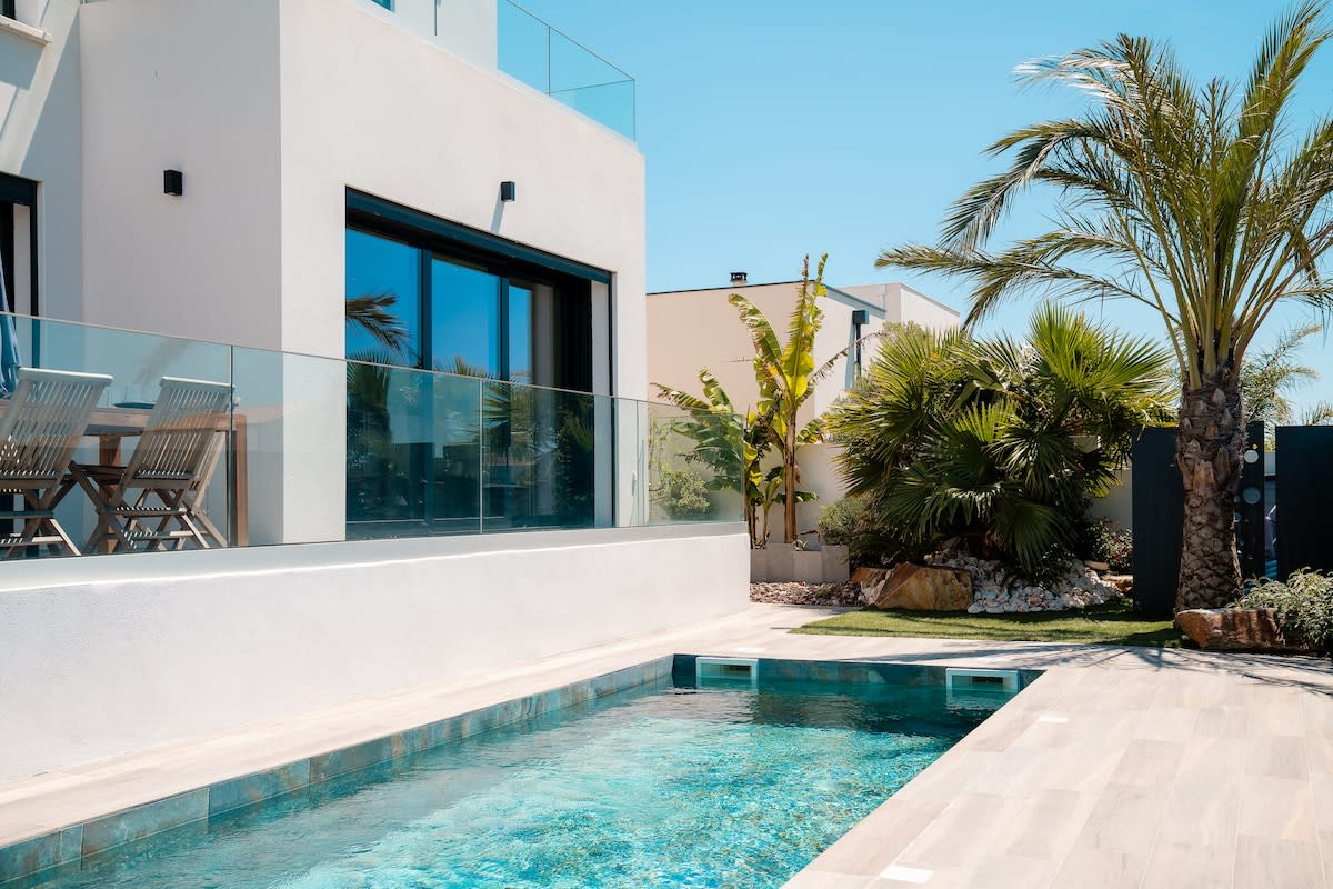 带温水游泳池的海滨别墅