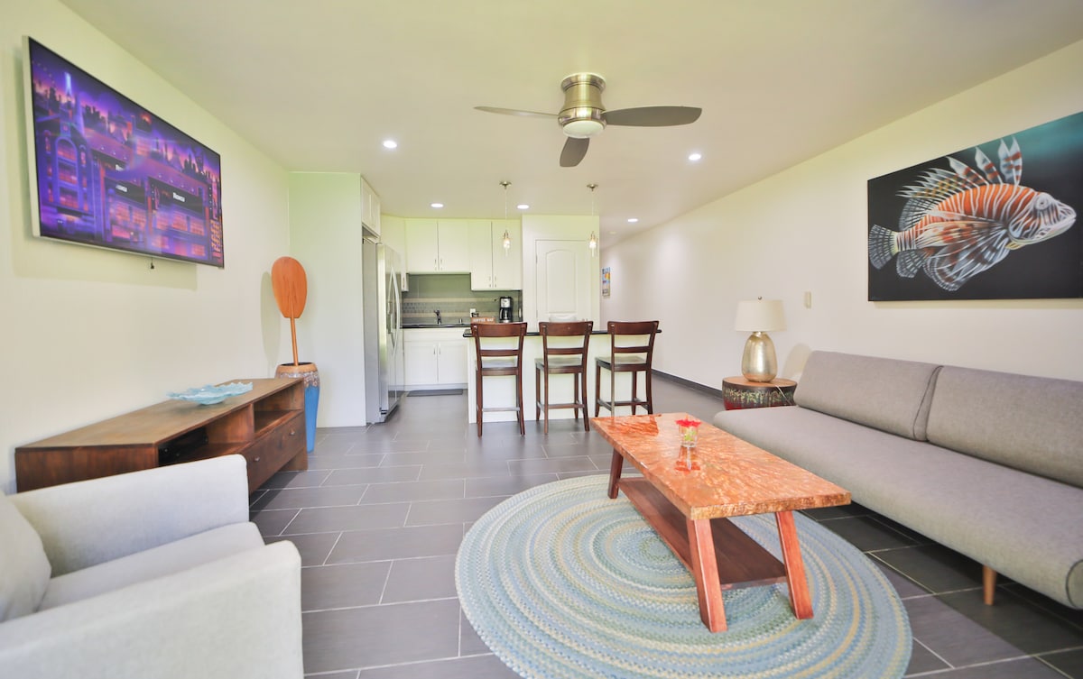 Experience Turtle Bay without resort pricing! - 1-bedroom + loft, 2-bath condo with king bed - Spacious living area with stylish furniture and flatscreen TV - Fully equipped kitchen and washer/dryer - Near beach - Access to 3 pools, tennis courts, and BBQ facilities - Beach gear provided - Close to attractions like Shark's Cove and Polynesian Cultural Center - Spotless unit with smooth communication throughout the stay.