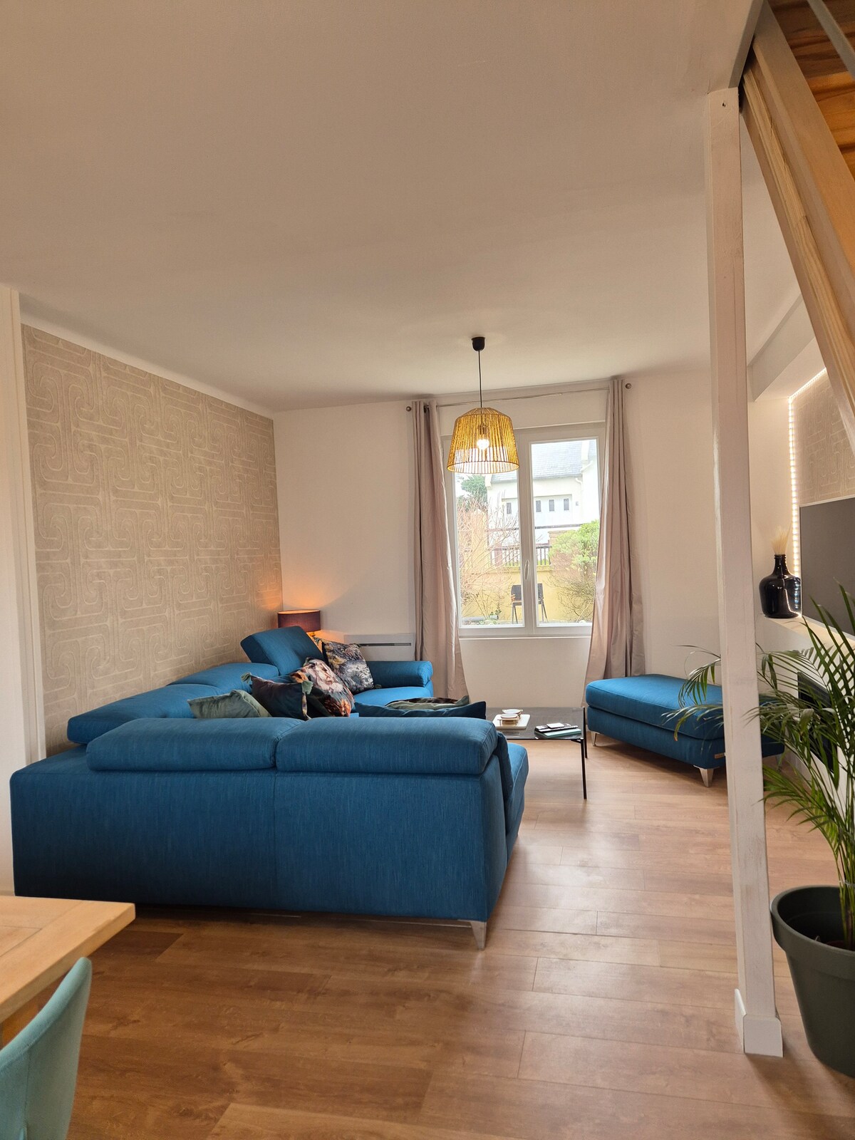 Profitez d'un logement de 54 m2 élégant et refait à neuf dans des combles pouvant accueillir 5 personnes. A 1 km de la plage et du gr 34, vous serez également proches des commodités( boulangerie, épicerie, bars,restaurants,pharmacie et médecin). Vous pourrez également vous divertir par les animations aquatiques de bord de mer ou simplement en profitant du terrain de pétanque sur le parking de l'appartement. De plus, vous serez bien situé si vous avez l'intention de visiter Ouessant ou Molène.