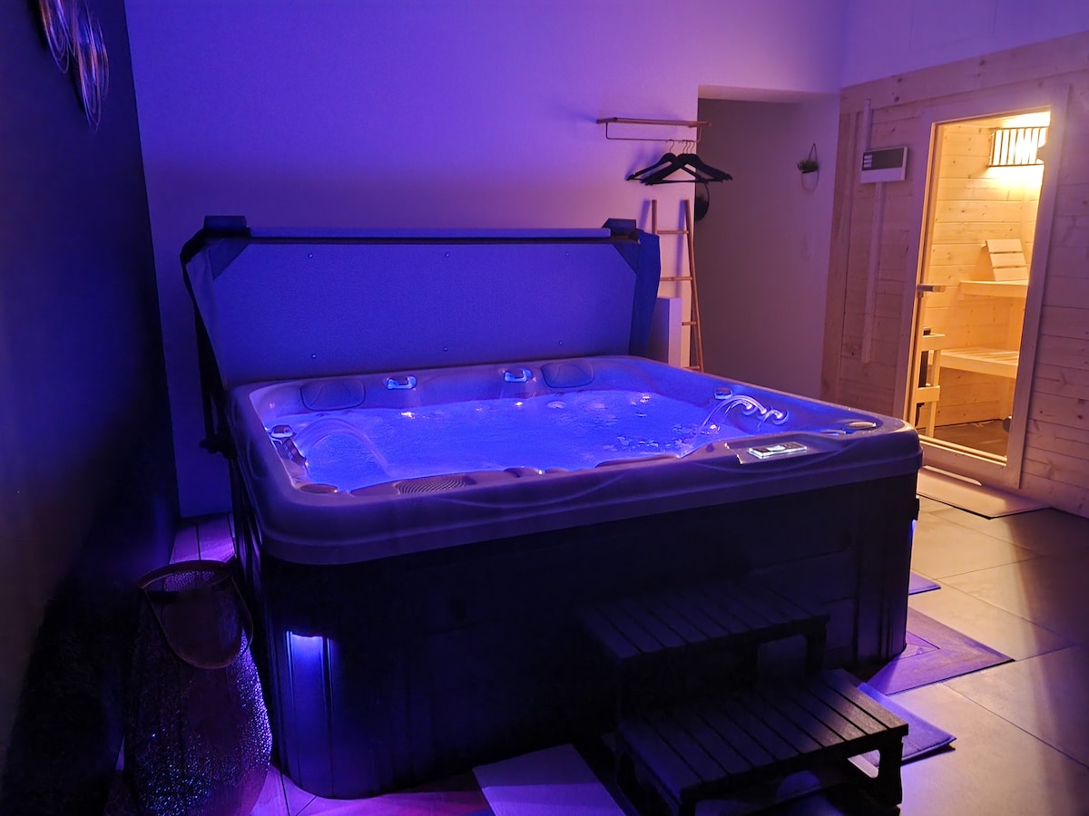 Gîte with high-end services 3*. Ideal location between Perros-Guirec, 5 minutes from the beaches. Ideal for couples wishing to find themselves in peace, relaxation and tranquility thanks to its terrace, private spa and outdoor shower, deck chairs, barbecue in the heart of a Zen setting. New interior, design and cocooning (2 TVs included netflix, Wifi Pro), equipped kitchen, romantic bedroom, dressing room and safe. Linen provided, Central air conditioning. Secure parking and Sauna.