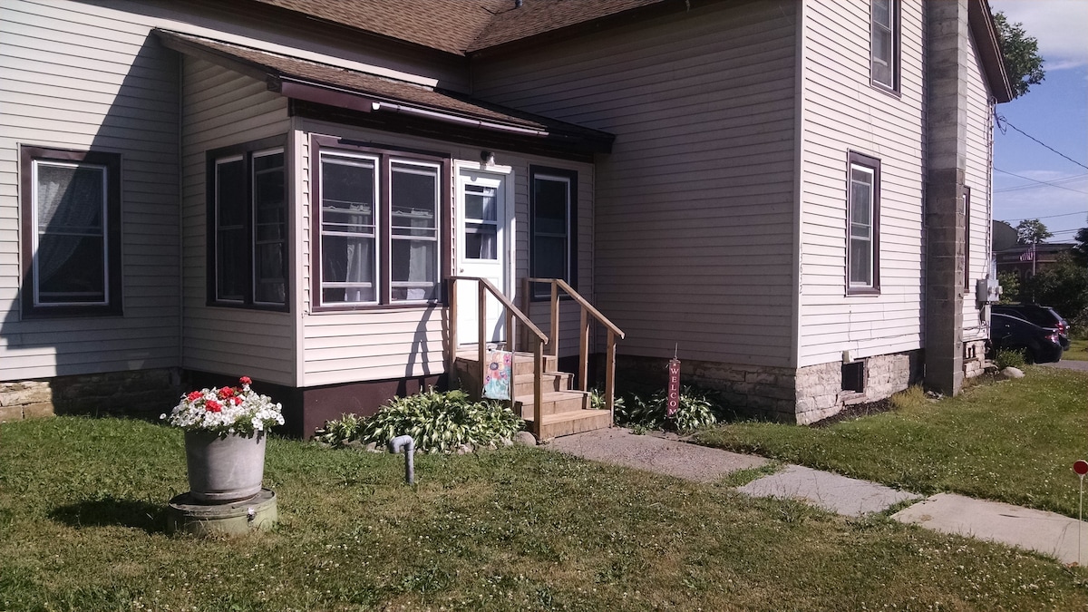 THIS IS NOT A VACATION HOME. Self-check-in/check-out. Old-fashioned, rustic apartment, painted wood floors, full kitchen, mud room, screened porch; boat/ATV parking; tent space. Ready for year-round outdoor sports, fishing, boating, biking, family camping trips. Near 1000 Islands, several lakes/waterways, 5 room apartment is one side of host duplex, 3 private entrances. King bed, 1 twin upstairs, 2 folding cots, comfy couch for sleep. Bathroom downstairs. WIFI; FireTV, HDMI cord; TVs w/DVD.