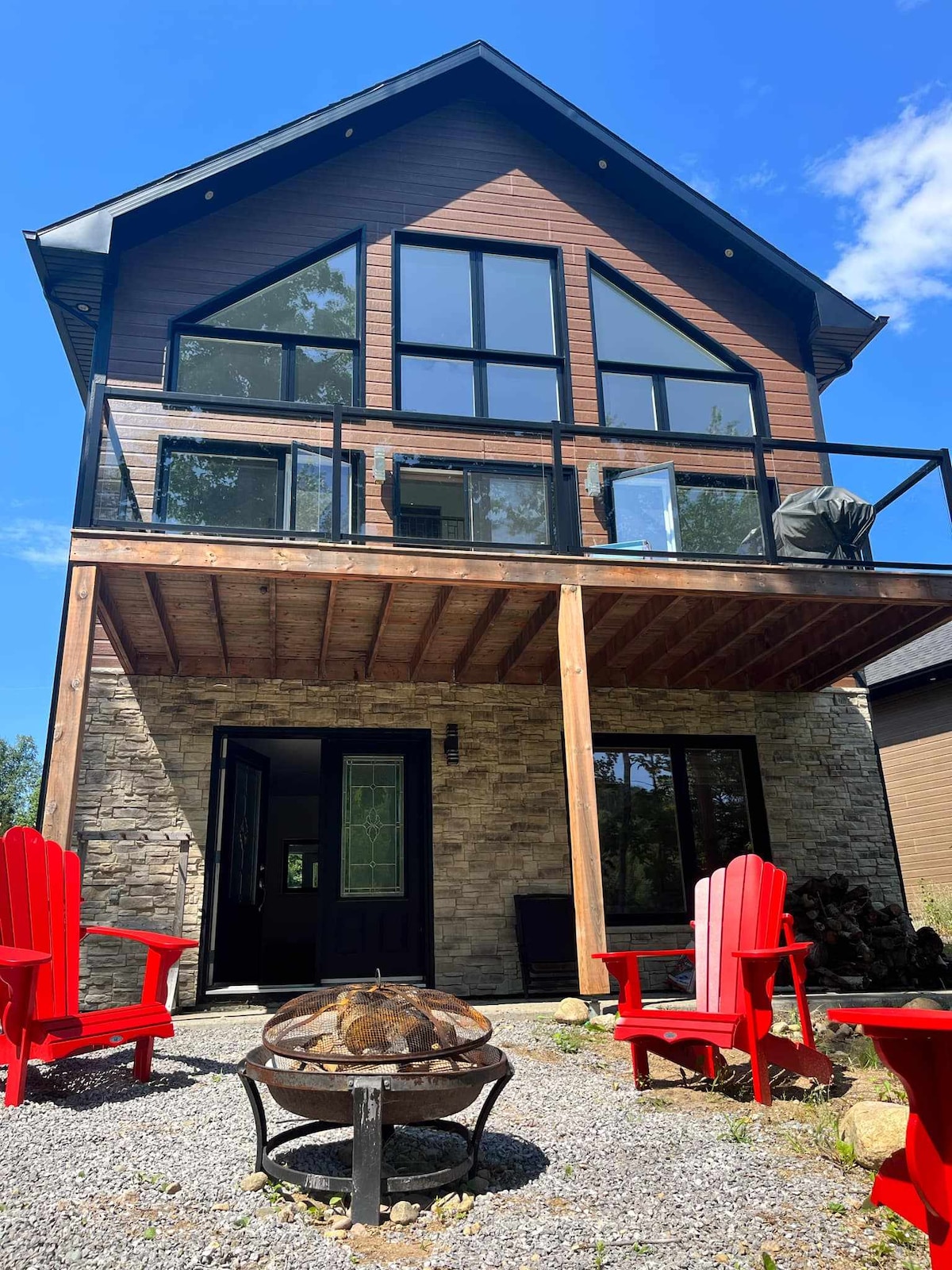 Cozy chalet located 400 meters from the Mont Édouard ski lift. In winter, enjoy the ski resort, backcountry area and snowshoe / cross-country trails. In summer, go to the mountain bike trails, pedestrian trails and the municipal swimming pool, without taking the car! The cottage is very well equipped, with 4 bedrooms, an open space upstairs and a living room in the basement. Outside, there is a large landscaped lot, with space for campfire.