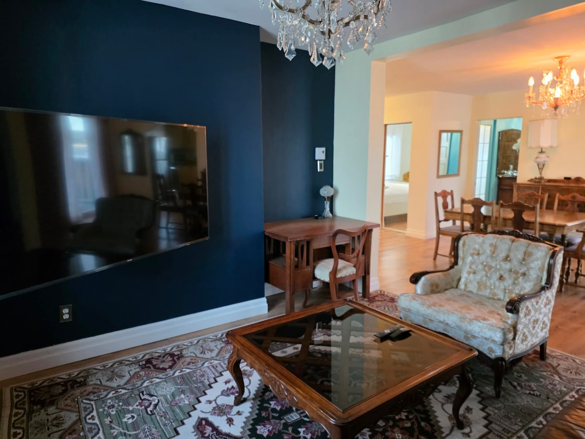 Appartement confortable pouvant accueillir au moins 4 personnes.Possibilité d'accueillir 1 personne de plus moyennant un surplus.(30.$$ de plus par nuit ) La troisième piece comprend un lit de camps ) Très près du centre ville et à quelques minutes de marche d’une épiceries et environs 10 minutes de marche du cœur du centre ville où se situe nombreux restaurants,boutiques,cafés,SAQ,etc. Accès à la piste cyclable facile.