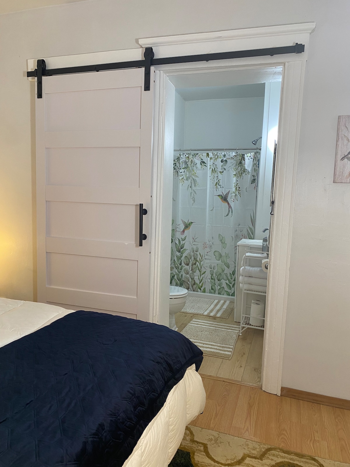 Retreat to this renovated, energy efficient, low-waste, studio in Downtown Lansing with patio views of the Capital. Redesigned as part of the recent revitalization of 1920's mixed-use sister-buildings; enter the private loft with refurbished original wood floors, custom countertops, one-of-a-kind headboard, bold contrasts and unexpected python print wallpaper. Ionia St. BnB is comfortable walking distance to the Capital Complex, river trail, baseball stadium, breweries, museums, and more.