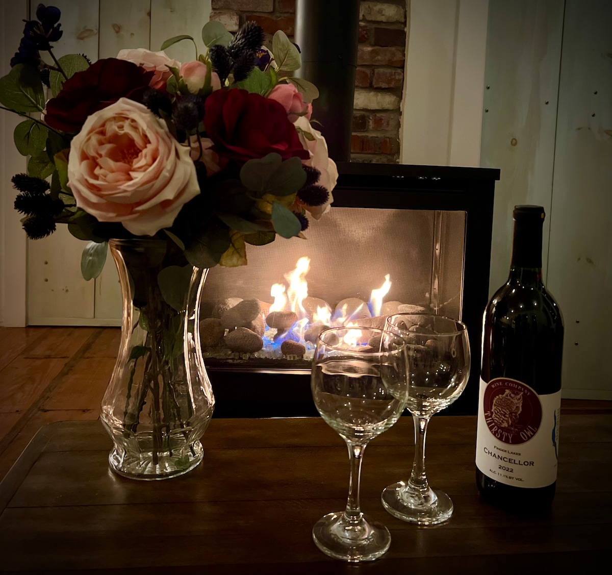Park Suite at New Park is situated on 18 acres of enchanting forest and well kept grounds, in the midst of wine country. In the heart of the Finger Lakes region, it is conveniently located about 10 minutes from the city of Ithaca and 5 minutes from Taughannock Falls. This is our largest, most luxurious and romantic suite. Cobblestone archways and stained glass throughout the suite make it feel like a piece of art in and of itself. Complete with a king-sized bed, cobblestone fireplace, and the